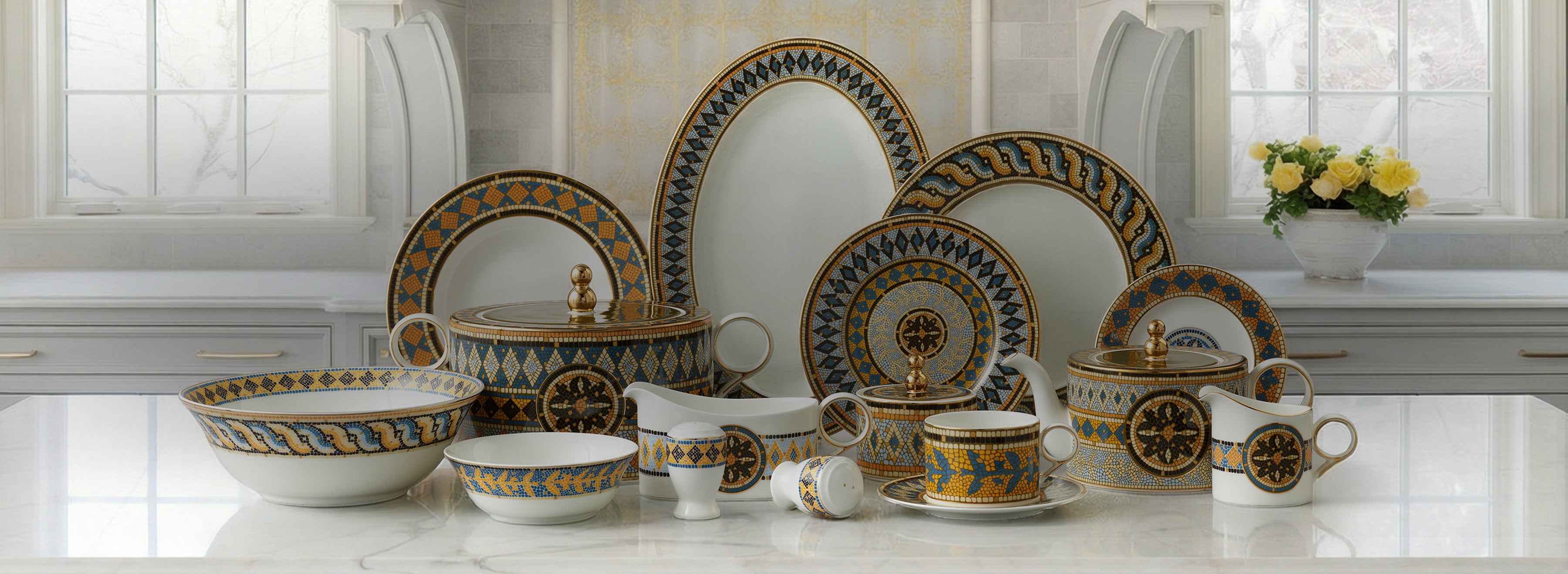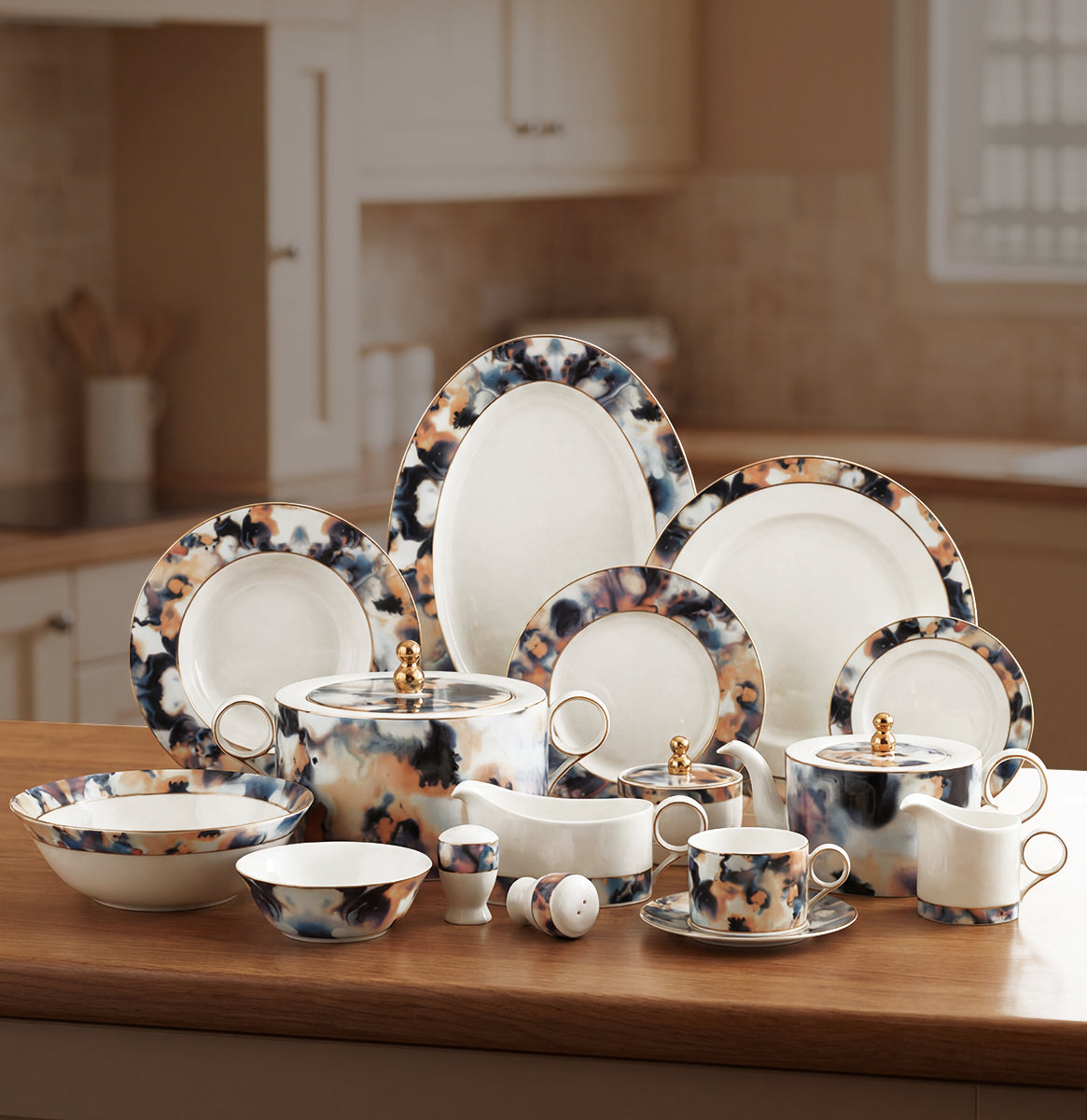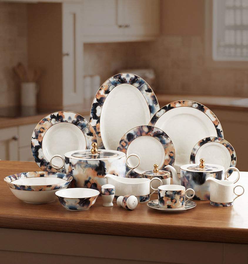 طقم عشاء دانكوتوا 24 قطعة أبيض فضي هيلين