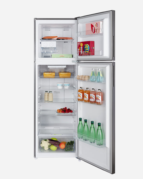ثلاجة هوفر 326 لترًا بدون تجميد، ضاغط عاكس مزدوج، باب قابل للعكس، أرفف زجاجية، ضمان لمدة عام من الشركة المصنعة و10 سنوات على ضاغط العاكس 50/60 هرتز، لمسة نهائية من الفولاذ المقاوم للصدأ - HTR-M326-S