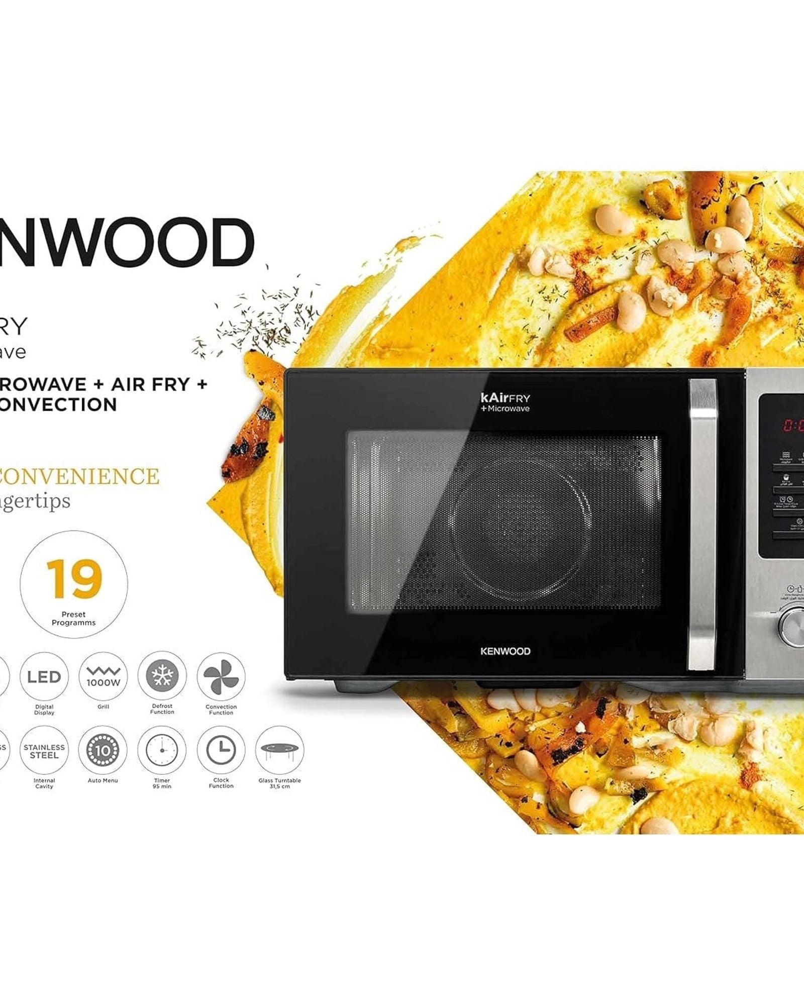 فرن ميكروويف كينوود 30 لترًا 4 في 1 + مقلاة هوائية + شواية + حمل حراري مع 19 برنامجًا محددًا مسبقًا، شاشة رقمية، 5 مستويات طاقة، وظيفة إزالة الجليد، مؤقت 95 دقيقة، وظيفة الساعة 1000 واط MWA30.000BK أسود/فضي