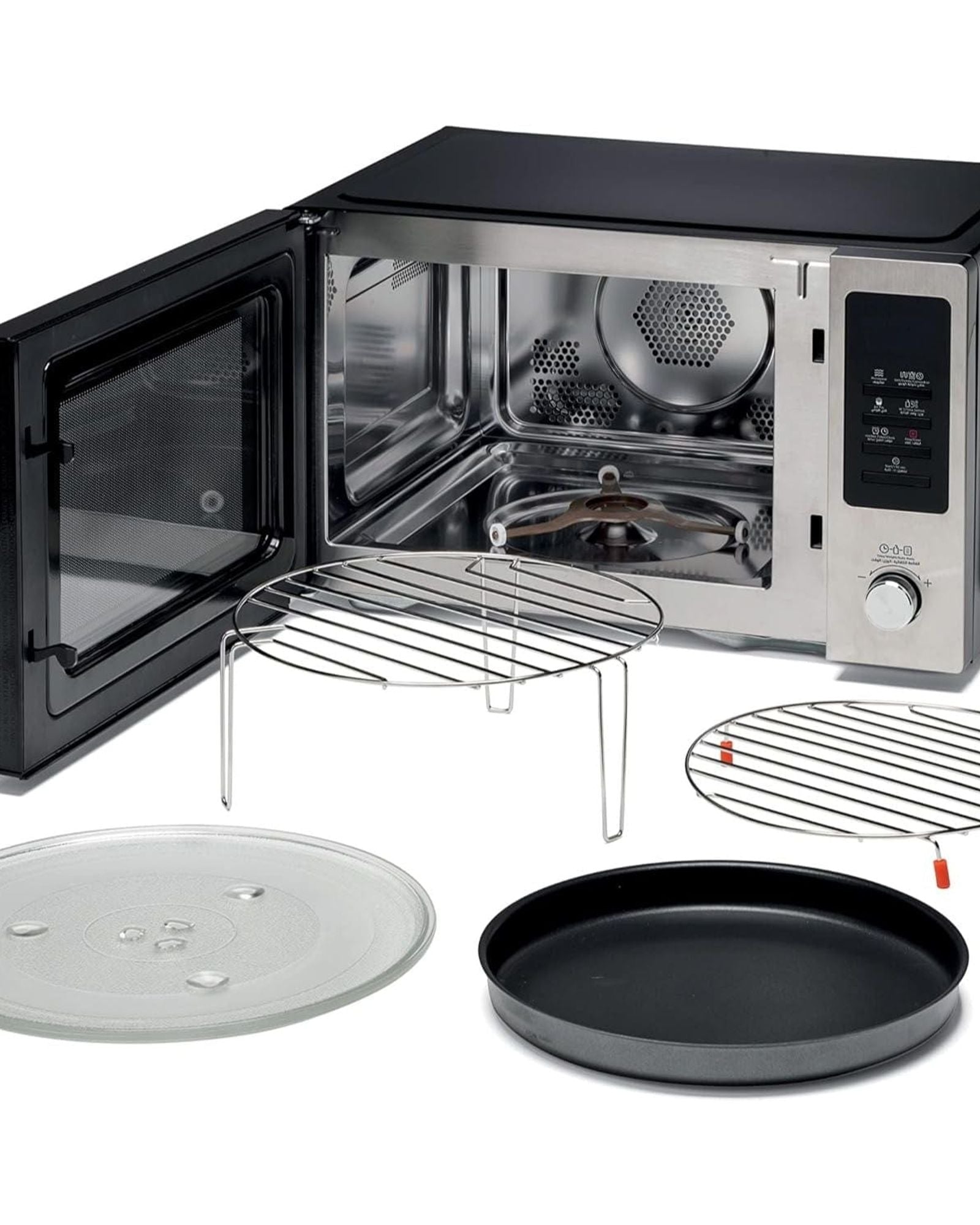 فرن ميكروويف 4 في 1 سعة 30 لترًا + مقلاة هوائية + شواية + حمل حراري مع 19 برنامجًا مُعدًّا مسبقًا، شاشة رقمية، 5 مستويات طاقة، وظيفة إزالة الجليد، مؤقت 95 دقيقة، وظيفة الساعة 1000 واط MWA30.000BK أسود/فضي