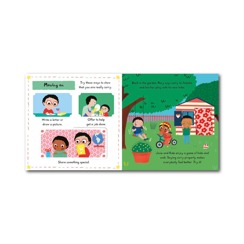 باستخدام اللوحات والعلامات التبويبية والشرائح، سيساعد كتاب "أستطيع أن أقول آسف" الأطفال الصغار على تعلم متى يحتاجون إلى قول آسف - وكيفية قول ذلك بمعنى.