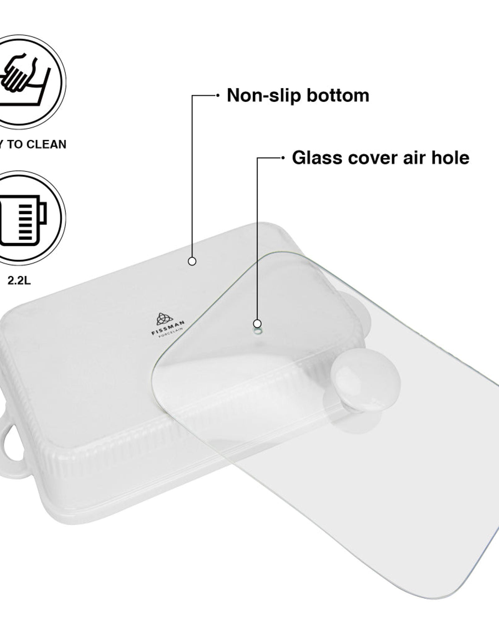 صينية خبز مستطيلة من فيسمان بغطاء زجاجي، 31.5 سم/2.2 لتر، بورسلين