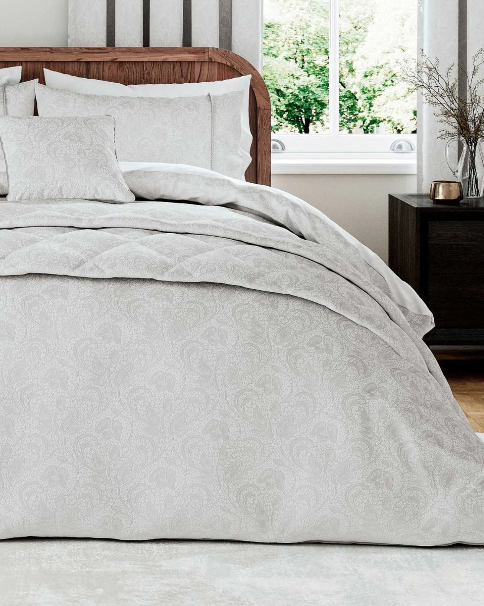 غطاء لحاف "أشلي" وغطاء وسادة أكسفورد من Bedeck of Belfast باللون البلاتيني