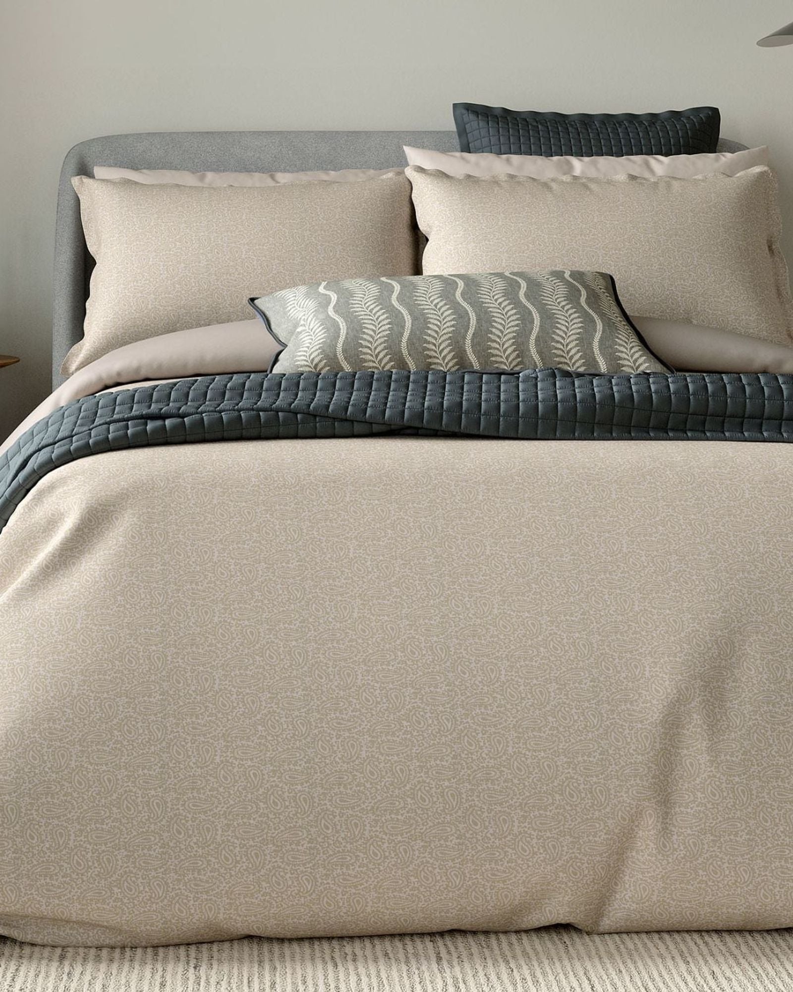 تقدم إيمي تصميمًا عصريًا من الجاكار، يتميز بنقشة بيزلي منسوجة بدقة في جميع أرجائه. تتجلى تفاصيلها الدقيقة في لون بيض البط الرقيق، مما يضفي لمسة من الأناقة على ديكور غرفة نومك.