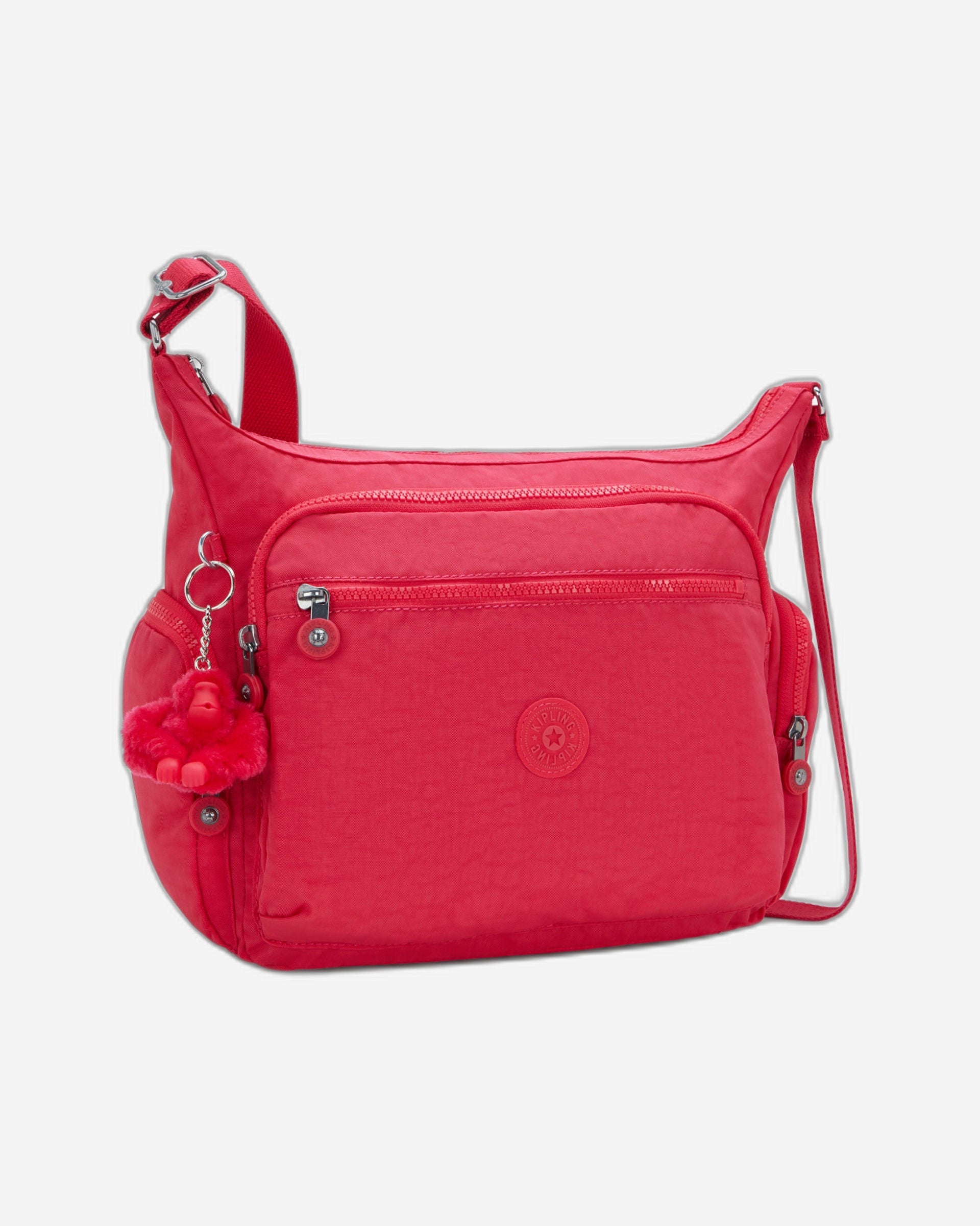 مع جيوب داخلية وخلفية وأمامية وجانبية متعددة، حقيبة غابي متوسطة الحجم تُلبي جميع احتياجاتك تقريبًا. اضبطي حزام الكتف لملاءمة مريحة، وعلقي قرد كيبلينج المفضل لديكِ على الحلقة D المرفقة لإضفاء لمسة مميزة.* جيب رئيسي بسحاب