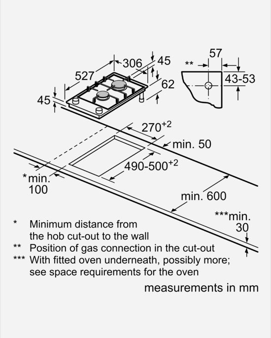 الأبعاد: 49 × 306 × 527 مم؛ يناسب تجويفًا قياسيًا 30 سم.
