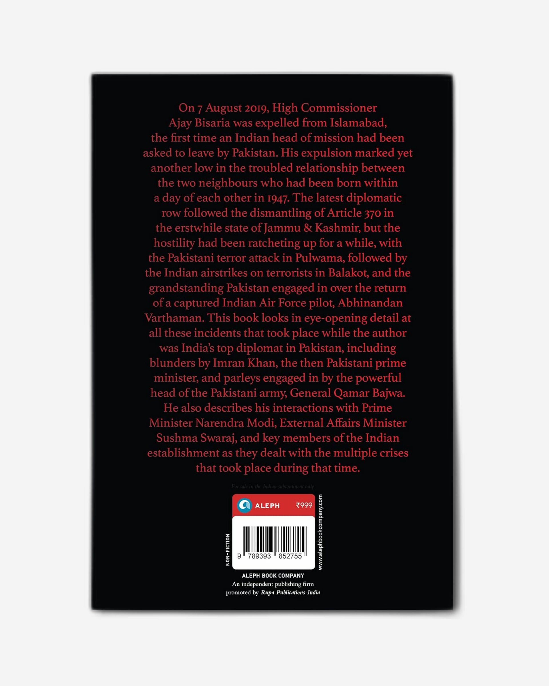 يتناول هذا الكتاب بتفصيلٍ مُلفتٍ جميعَ هذه الحوادث التي وقعت أثناء تولي المؤلف منصبَ الدبلوماسي الهندي الأعلى في باكستان، بما في ذلك أخطاء عمران خان، رئيس الوزراء الباكستاني آنذاك، والمحادثات التي أجراها قائد الجيش الباكستاني القوي، الجنرال قمر باجوا. كما يصف تفاعلاته مع رئيس الوزراء ناريندرا مودي، ووزيرة الخارجية سوشما سواراج، وأعضاءٍ بارزين في المؤسسة الهندية أثناء تعاملهم مع الأزمات المتعددة التي وقعت خلال تلك الفترة.