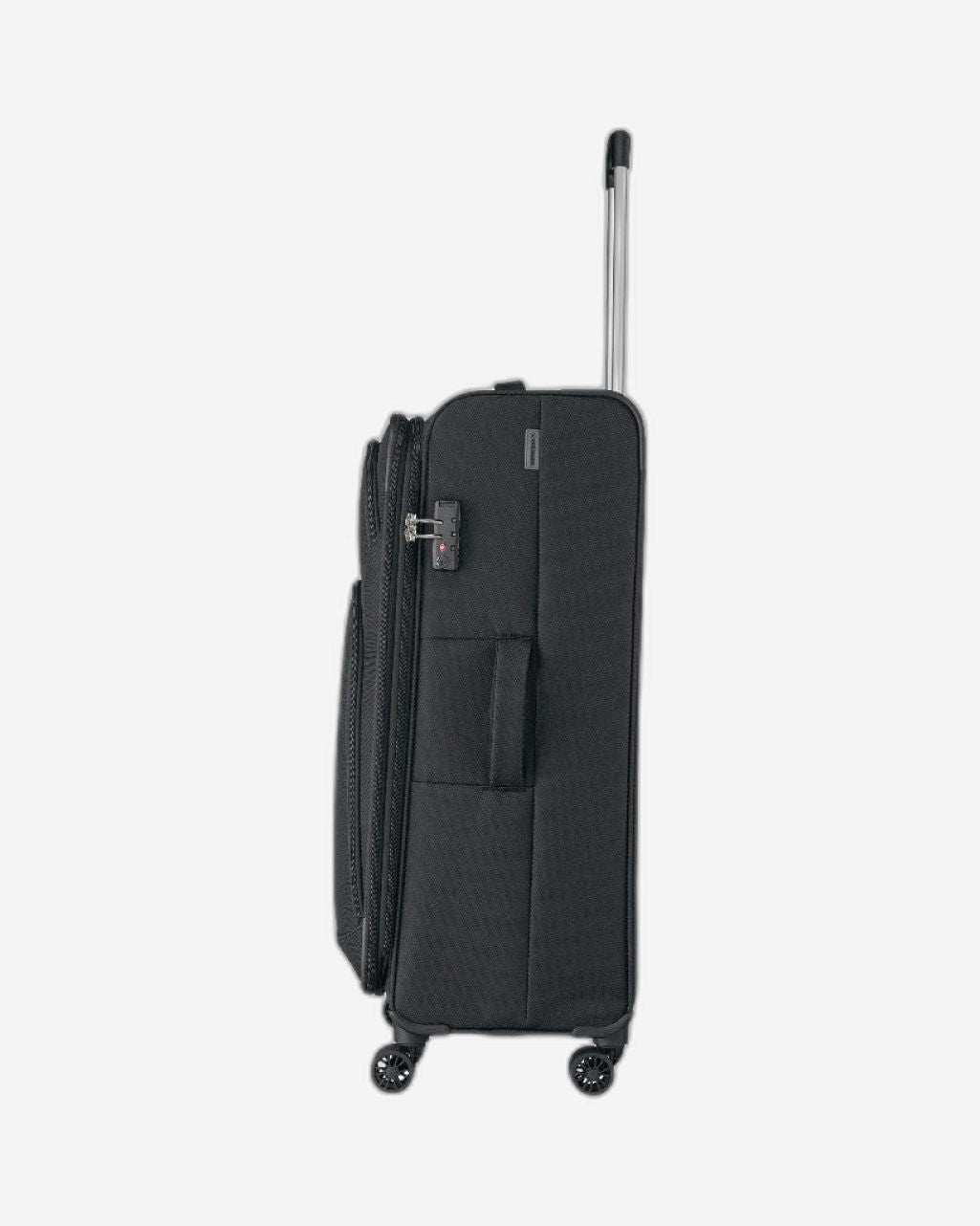| الخارج: | * قفل مركب معتمد من Travel Sentry® * 4 عجلات ثنائية العجلات سهلة الدوران وهادئة * مقبض عربة تلسكوبي * مقبض الإمساك |