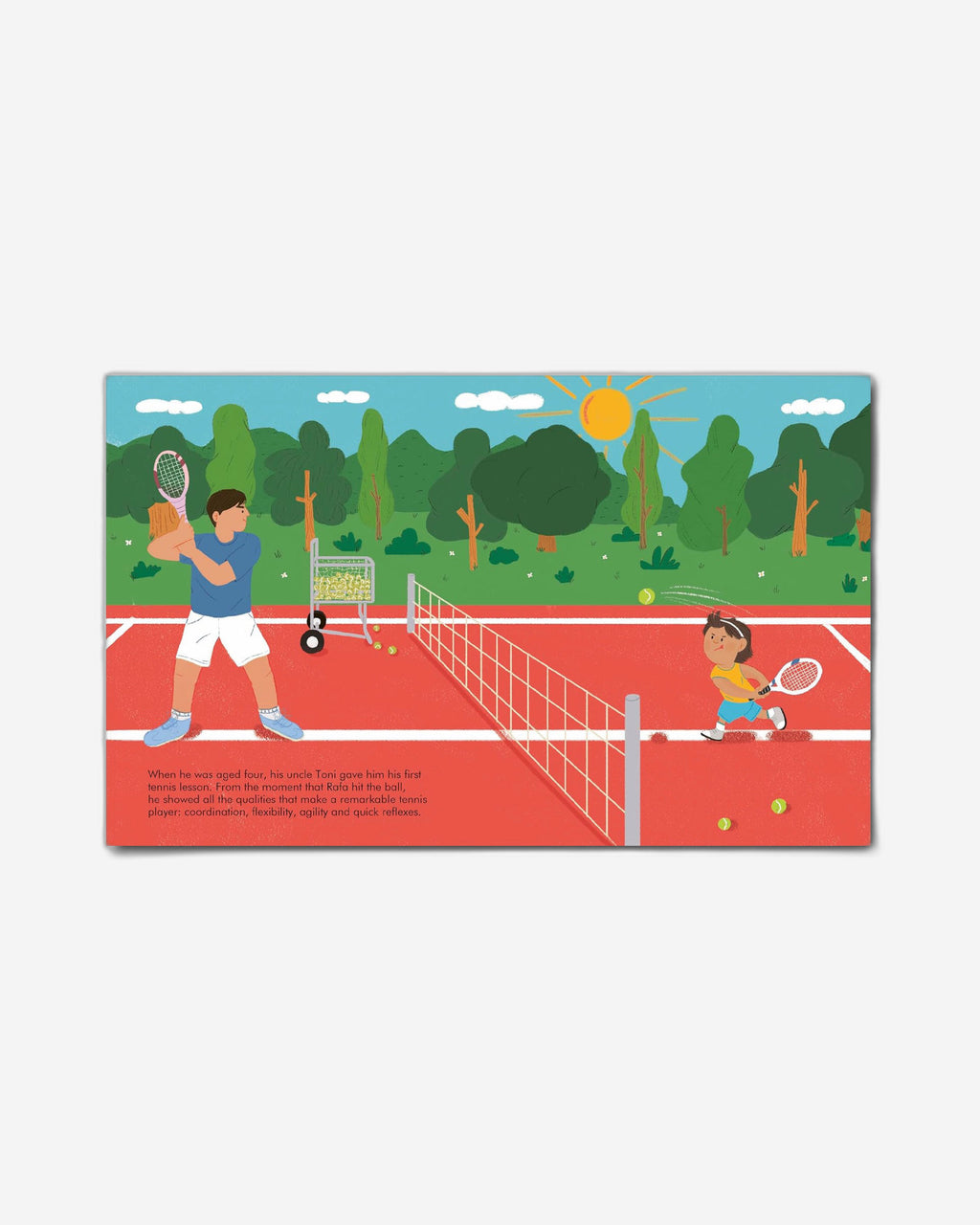 يتضمن هذا الكتاب القوي رسومًا توضيحية أنيقة وغريبة وحقائق إضافية في الجزء الخلفي، بما في ذلك جدول زمني للسيرة الذاتية مع صور تاريخية وملف تفصيلي لحياة لاعب التنس.
