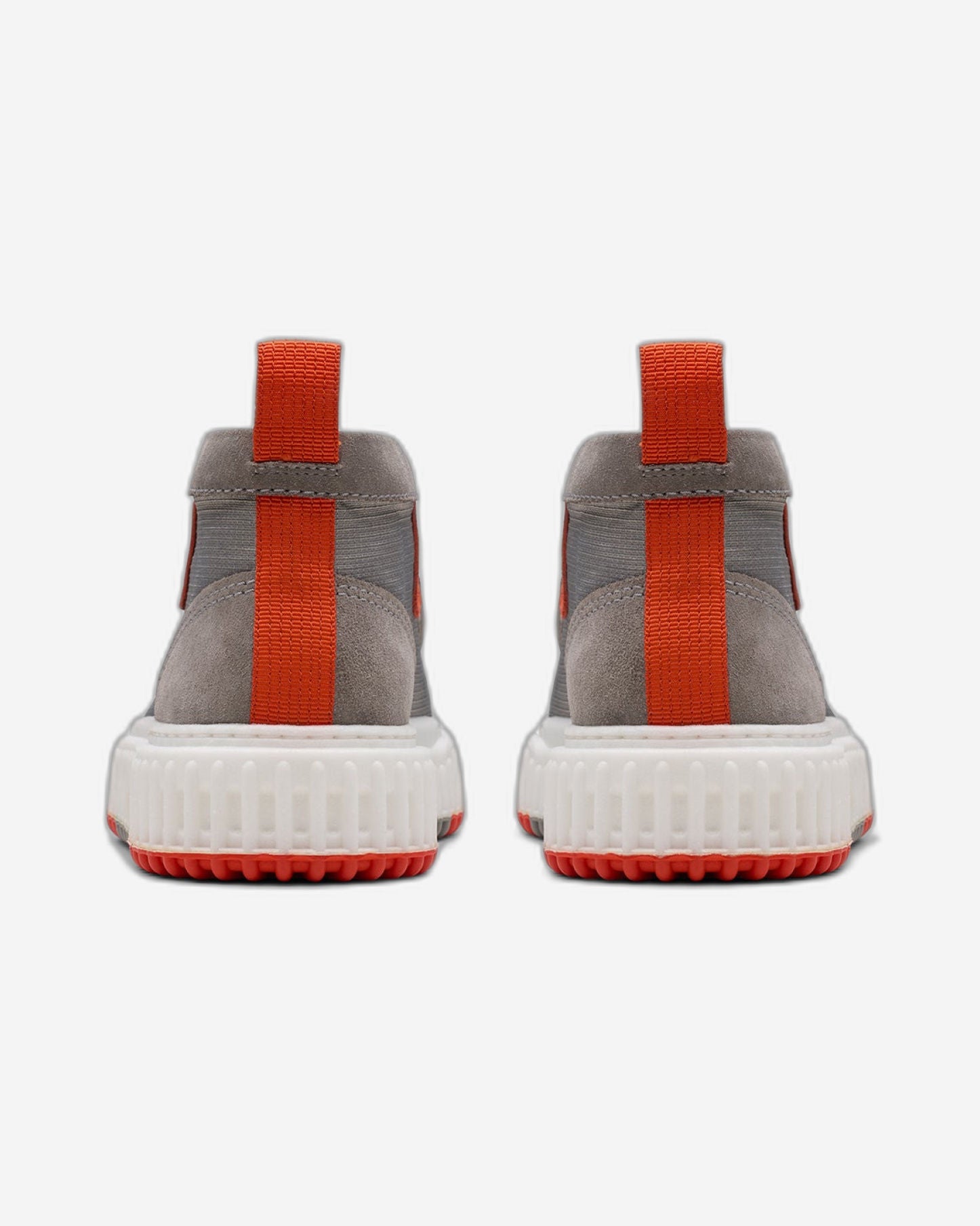 • جزء علوي من النايلون الرمادي المقاوم للتمزق، متين وتقني، مع مقدمة من جلد الغزال الرمادي الفاخر