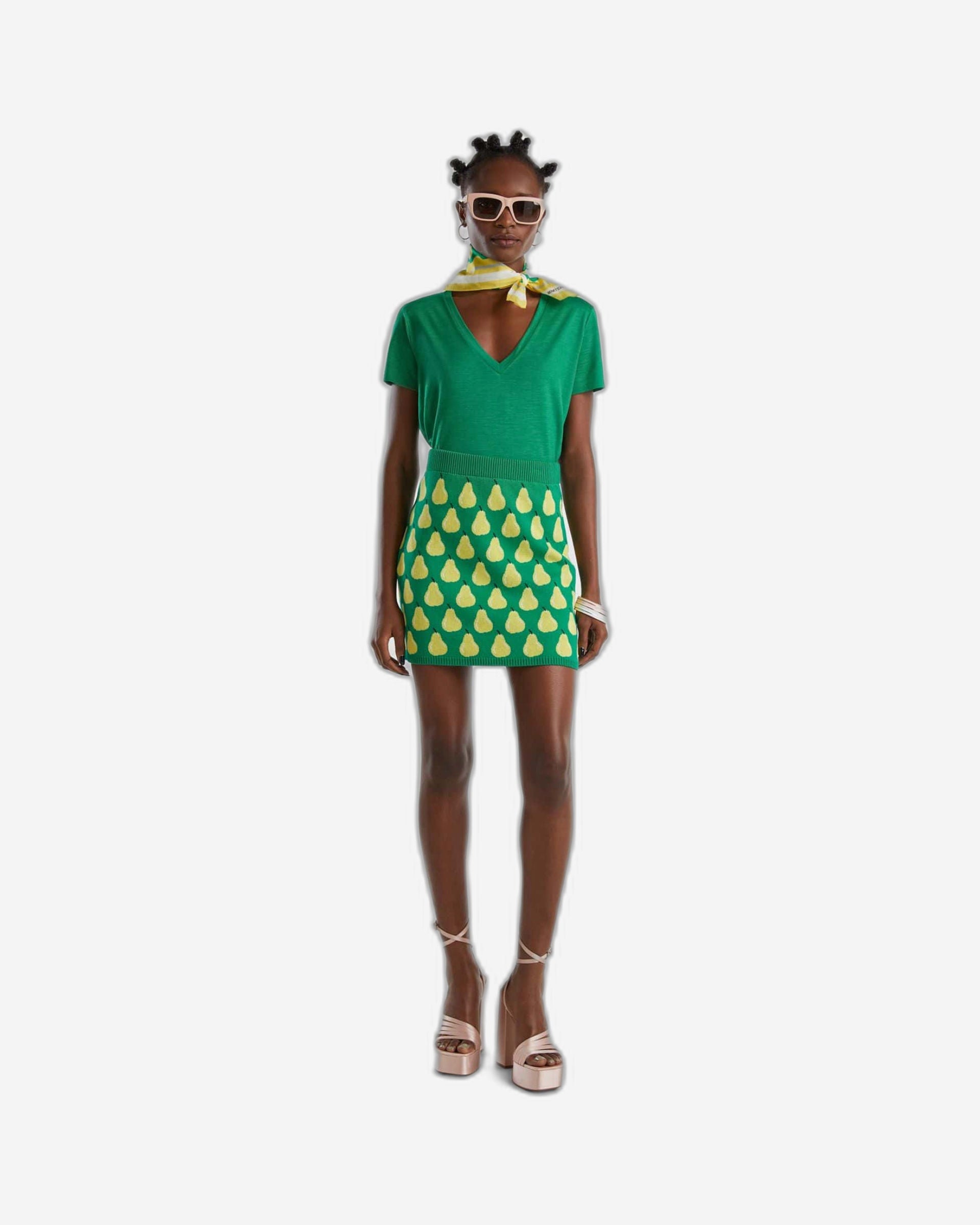 تيشيرت بقصّة عادية، وفتحة رقبة على شكل حرف V، وأكمام قصيرة. مصنوع من فيسكوز مستدام، مصنوع من خشب غابات معتمدة، مع مراعاة أعلى المعايير البيئية.