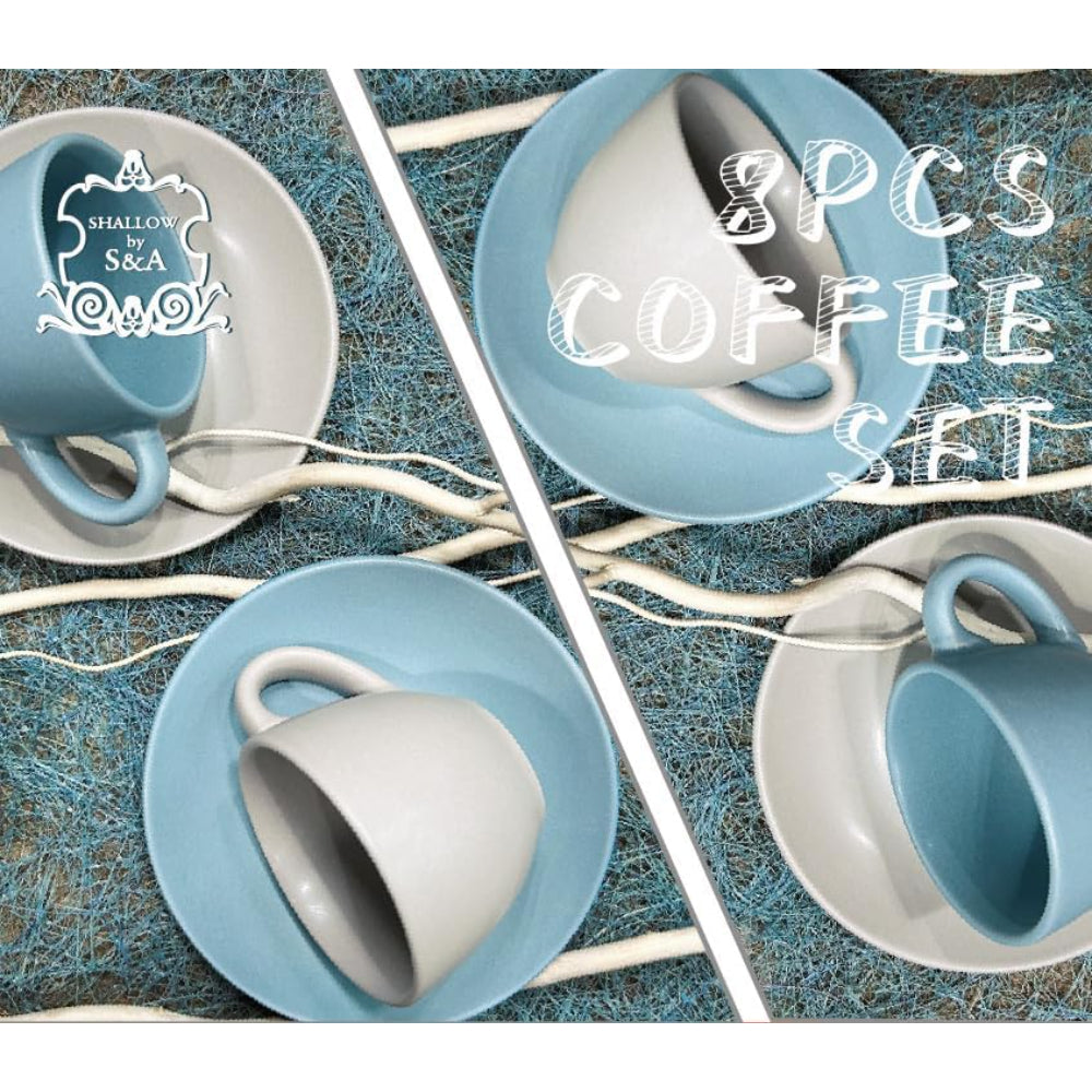 طقم فناجين قهوة وصحن من شالو جاسبي، ٤ قطع، سعة ٩٠ مل، مطلي بطبقة من الزجاج السنغافوري | أدوات مائدة للمطبخ، سيراميك، فخار حجري