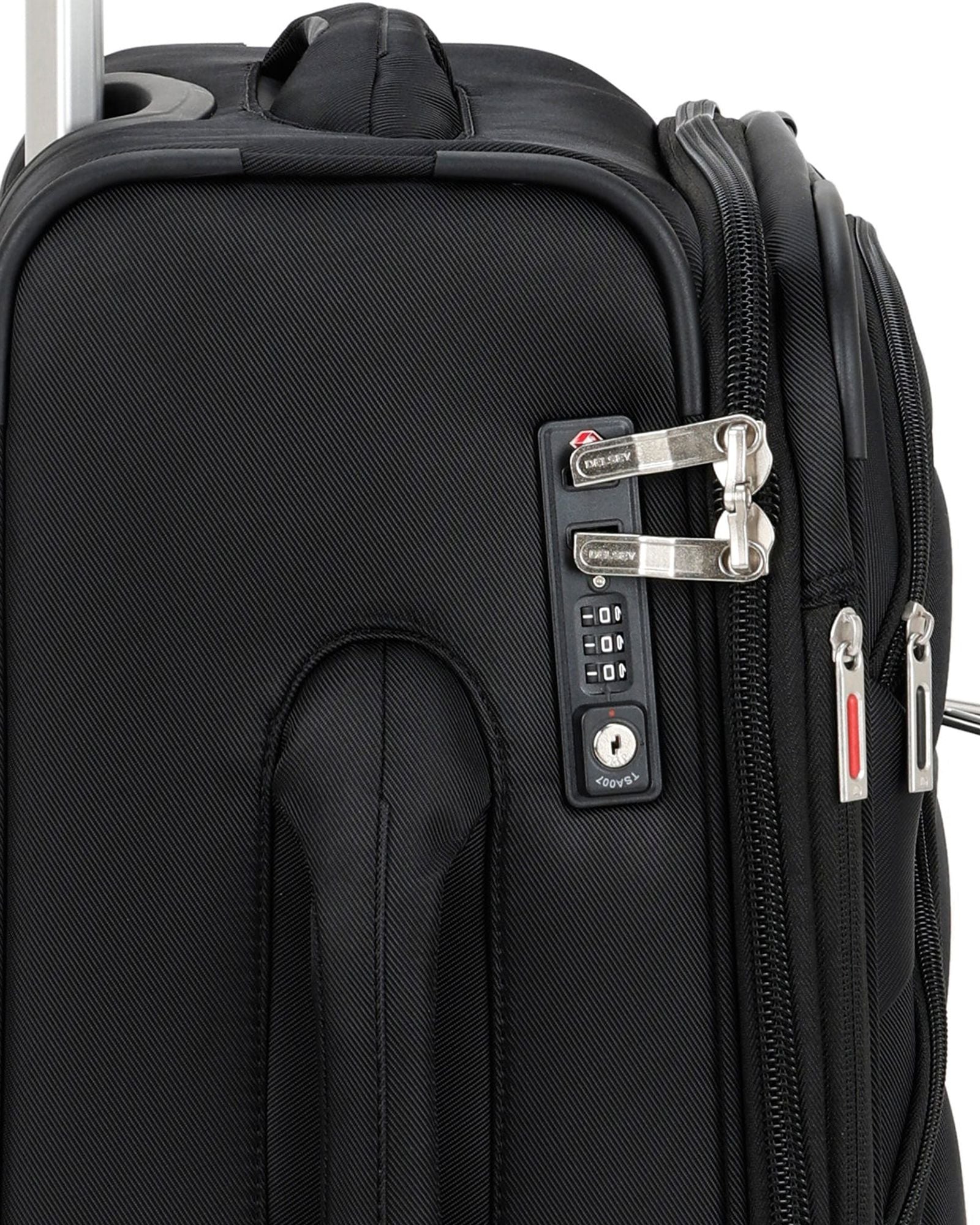 سحاب SECURITECH® الحاصل على براءة اختراع يحمي الأمتعة الشخصية بفضل نظامه الأمني المعزز. يتميز نظام إغلاق الأمتعة الفريد بمقاومة أكبر بثلاث مرات من أنظمة الإغلاق التقليدية، ويجنب خطر السرقة عند فتح السحاب! تأتي هذه الحقيبة مزودة بقفل رقمي من إدارة أمن النقل (TSA)، مما يسمح لك بتأمين الأمتعة برمز شخصي، مع تمكين إدارة أمن النقل (TSA) من التحكم في الأمتعة دون إتلافها باستخدام مفتاح خاص.