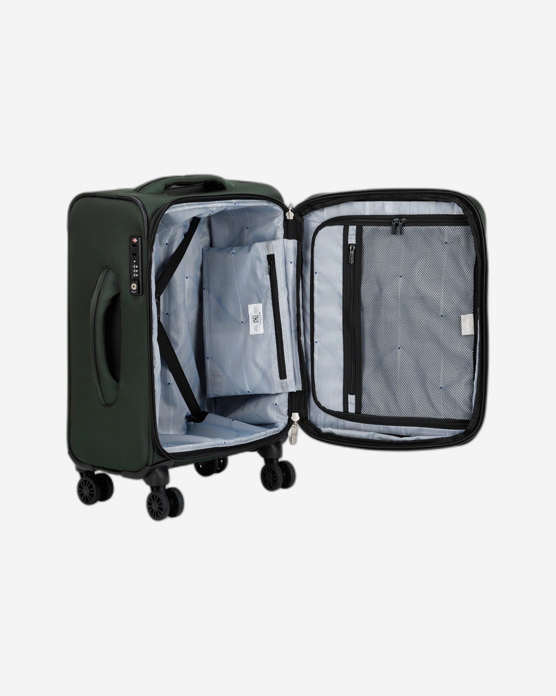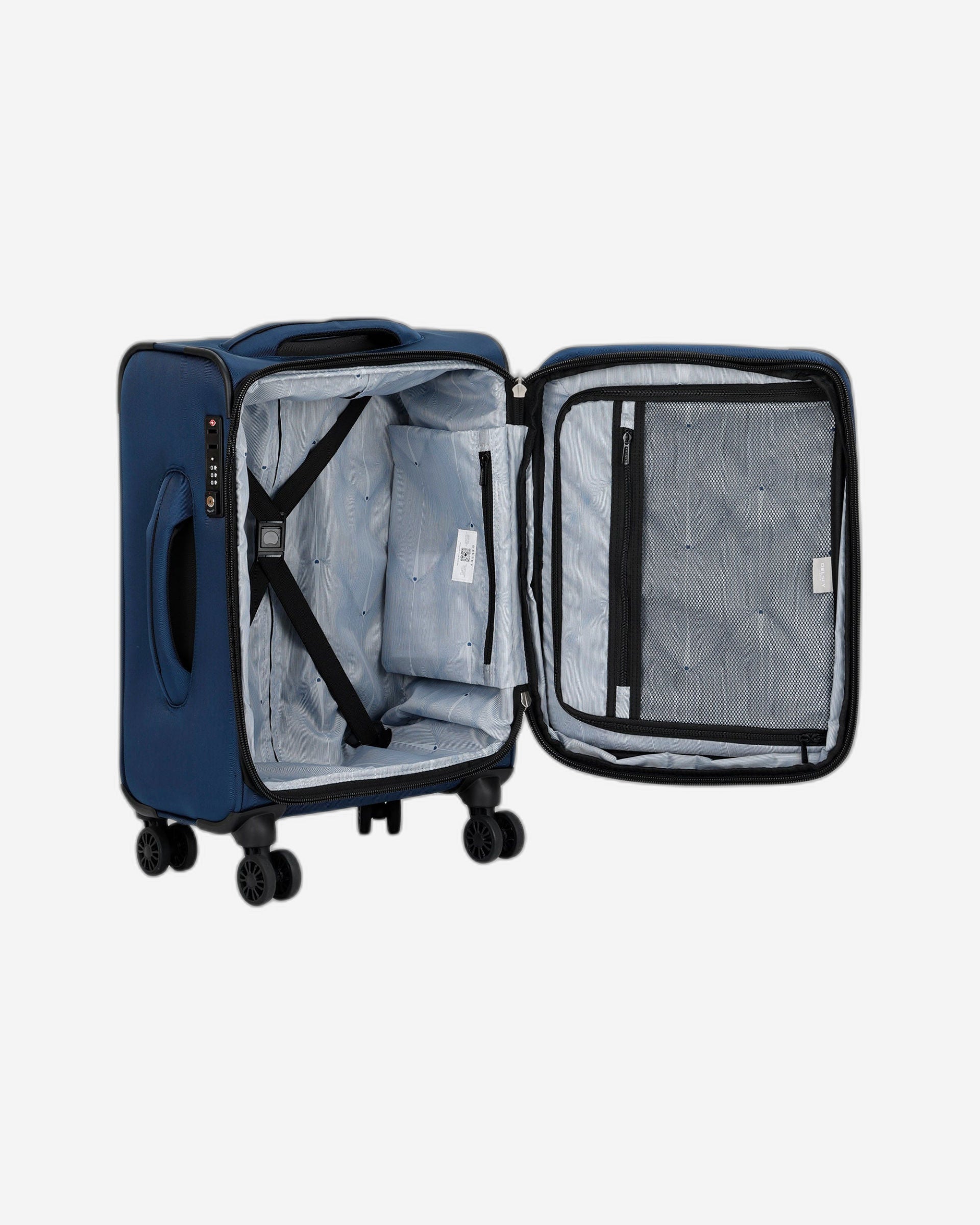 يتيح التخزين الذكي للأمتعة تنظيمًا مثاليًا. يوفر الجزء الداخلي من الحقيبة حجرة بأحزمة قابلة للتعديل وجيبًا شبكيًا لتخزين أكبر عدد ممكن من الأغراض مع تحسين المساحة المتاحة.