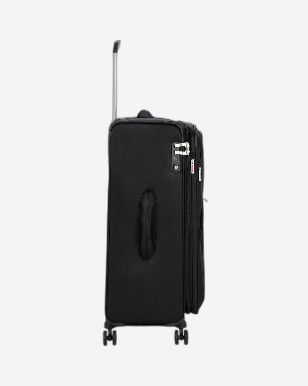 | الخارج: | * مقبض علوي متكامل * مقبض جانبي متكامل * الأقفال: قفل مركب مع TSA * العجلات: 4 عجلات فردية صامتة |