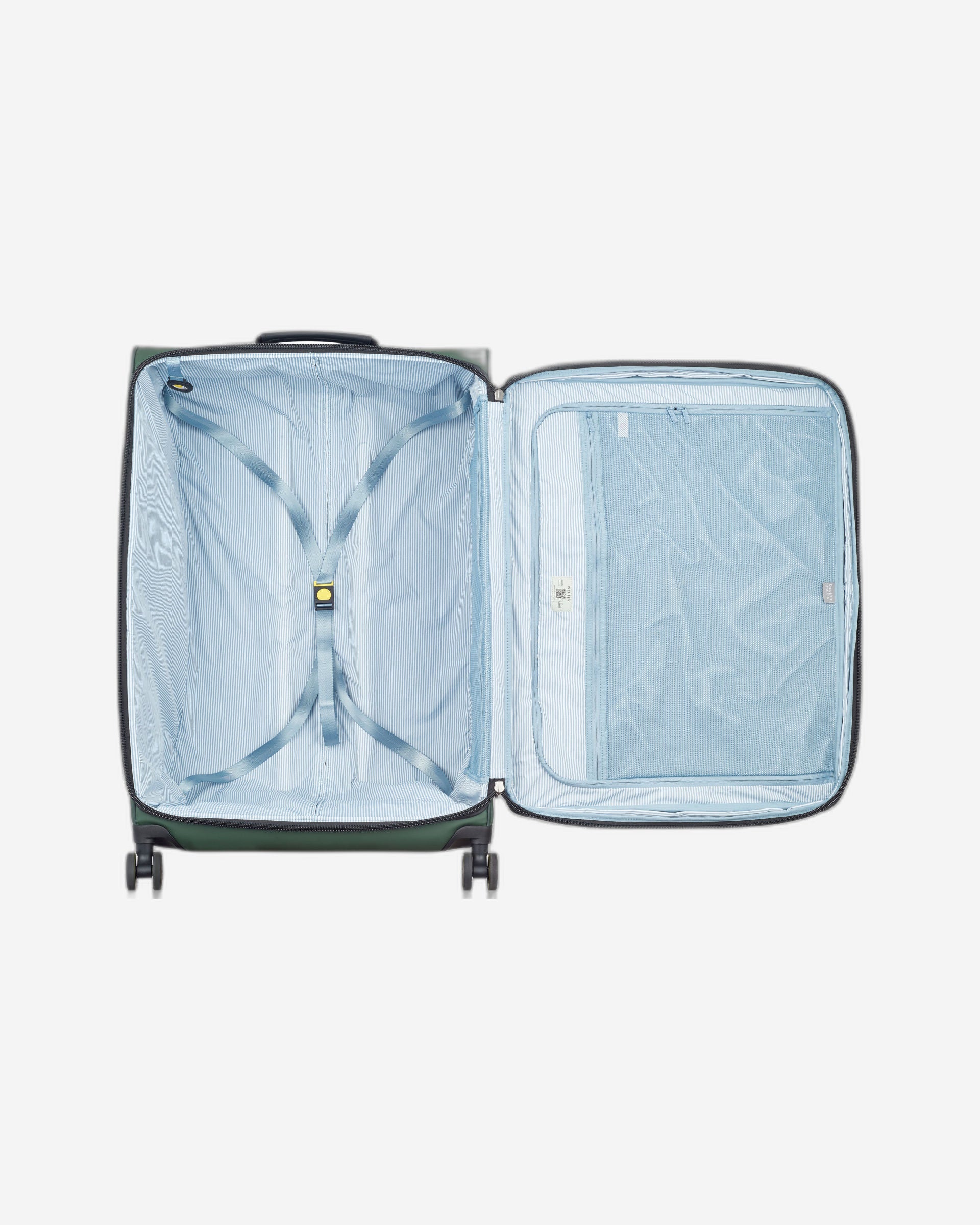 | الخارج: | • مقبض جانبي متكامل • مقبض علوي متكامل • قفل مركب مع TSA • فتح مُحسّن حاصل على براءة اختراع من Zipsecuritech: Zst 2 • حامل العنوان • نظام عربة خفيفة متعددة المواضع • 4 عجلات مزدوجة لتحسين الدوران والاستقرار |
