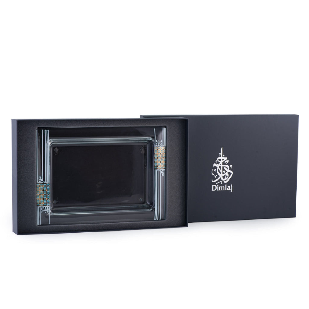طبق تقديم مستطيل كبير من ديملاج أصالة (ذهبي وأخضر)