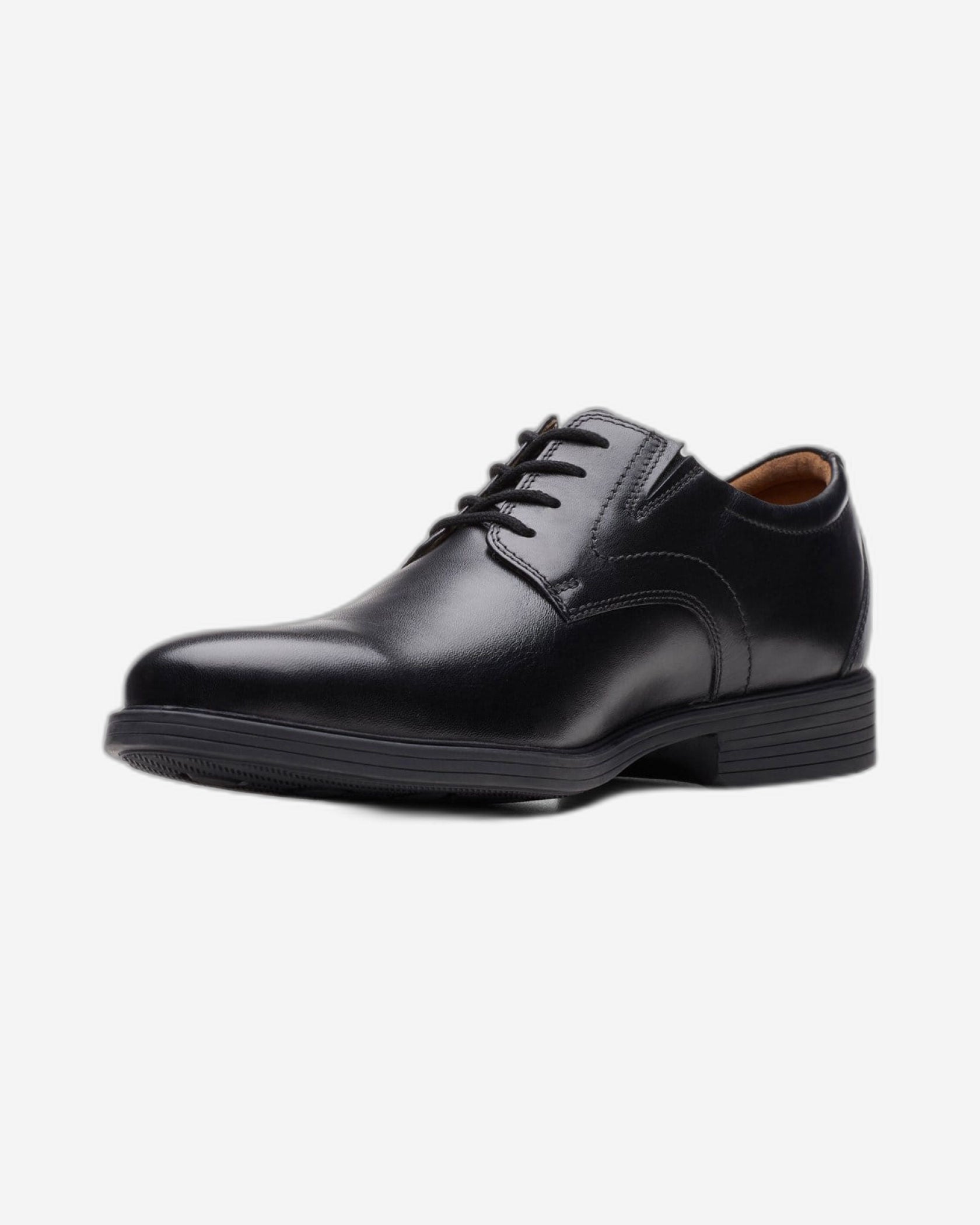 يُضاف هذا الحذاء الرجالي الأنيق ذو الأربطة إلى مجموعة كلاركس، فهو يجمع بين الجلد الناعم المصقول بلون بني داكن مع مقدمة مستديرة كلاسيكية ونعل رفيع وخياطة مُصممة بعناية. نعل خارجي مطاطي مزدوج وتوسيد مُوزع بعناية يُعززان الراحة، بينما يُعزز النعل الخارجي ثباته. دليل المقاسات