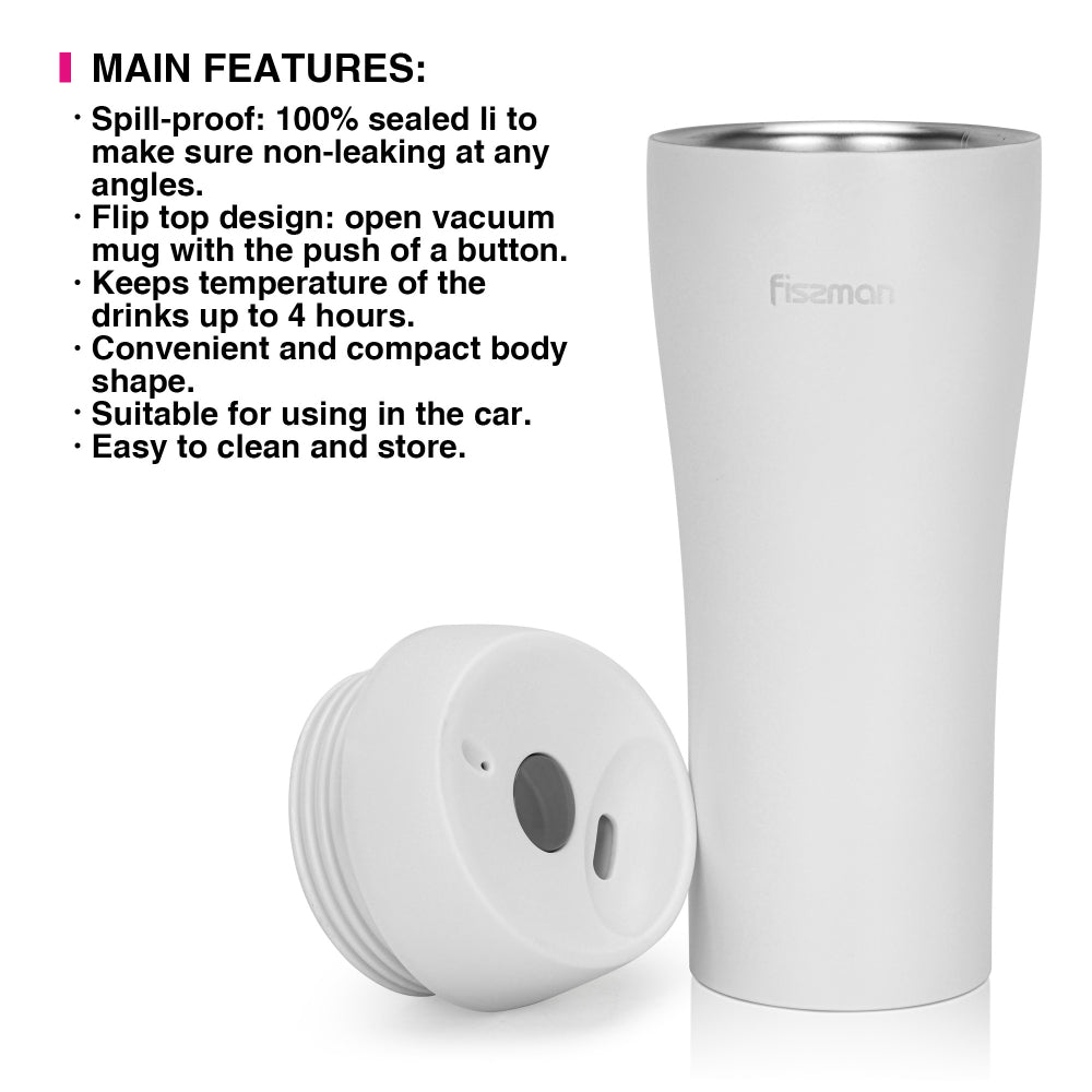 كوب سفر فيسمان مزدوج الجدار مفرغ من الهواء، 420 مل، لون أبيض من الفولاذ المقاوم للصدأ