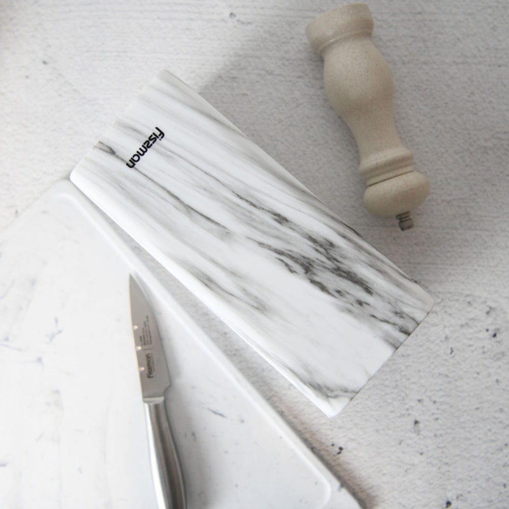 * نظام تخزين مبتكر: يتميز حامل السكاكين من FISSMAN بوجود ملحق شعيرات يحمل السكاكين من أي حجم بشكل آمن دون إتلاف الشفرات.