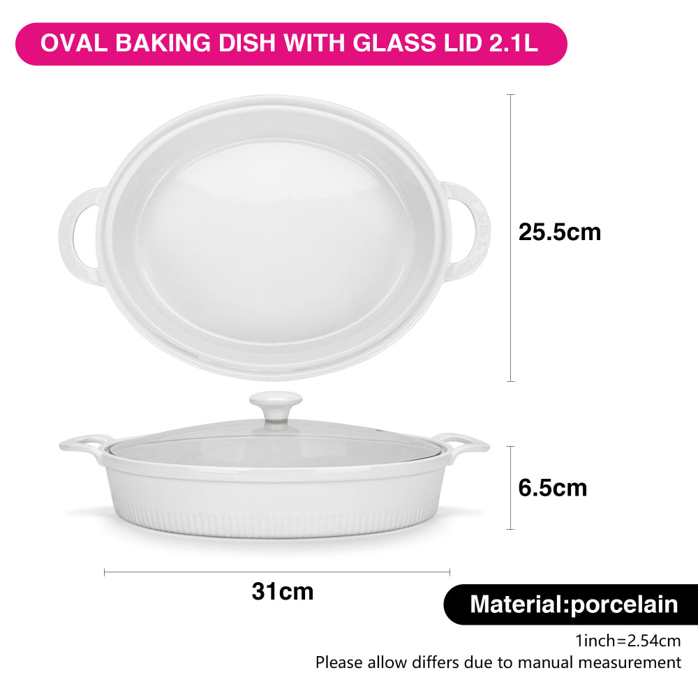 صينية خبز بيضاوية من فيسمان بغطاء زجاجي، 31 سم/2.1 لتر، بورسلين