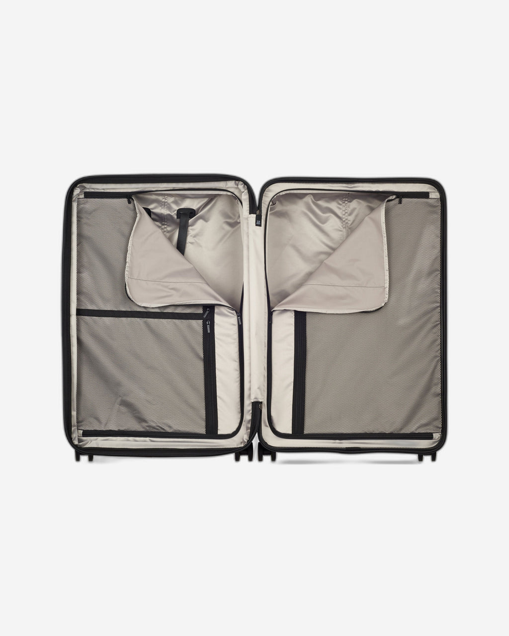 تصميم مبتكر وأنيق بخطوط رياضية، مصمم لضمان حرية حركة كاملة. المواد المتينة تقنيًا، بالإضافة إلى لمسات الجلد، تجعلها حقيبة أنيقة ومقاومة في آن واحد. احمِ حجرات الأمتعة: الأمامية والرئيسية، بفضل القفلين. تتيح لك أقفال TSA المركبة تأمين الأمتعة برمز شخصي، بينما تسمح لهيئة أمن النقل (TSA) بفحص الحقيبة دون إتلافها، بفضل مفتاح خاص. الحقيبة مزودة بنظام إغلاق آمن: Securitech2 Zip. يتميز هذا الإغلاق بميزة فريدة ومقاومة أكبر بثلاث مرات للاختراق من الإغلاق التقليدي. المقابض معالجة بمضادات الميكروبات لمنع نمو البكتيريا. يتكون الجزء الداخلي من مجموعة من الأشرطة بالإضافة إلى فاصل لتنظيم مثالي. بالإضافة إلى ذلك، صُنعت البطانة الداخلية من مادة البولي إيثيلين تيريفثالات (RPET)، وهي مادة مُعاد تدويرها بالكامل. يسمح لها مُعالجتها المضادة للميكروبات بمنع نمو البكتيريا. كما تتكيف الحقيبة مع كمية الأشياء التي تحملها بفضل المُوسّع. تحتوي الحقيبة على 4 عجلات مزدوجة متينة وهادئة. متعددة الاتجاهات، صُممت خصيصًا لسهولة المناورة.