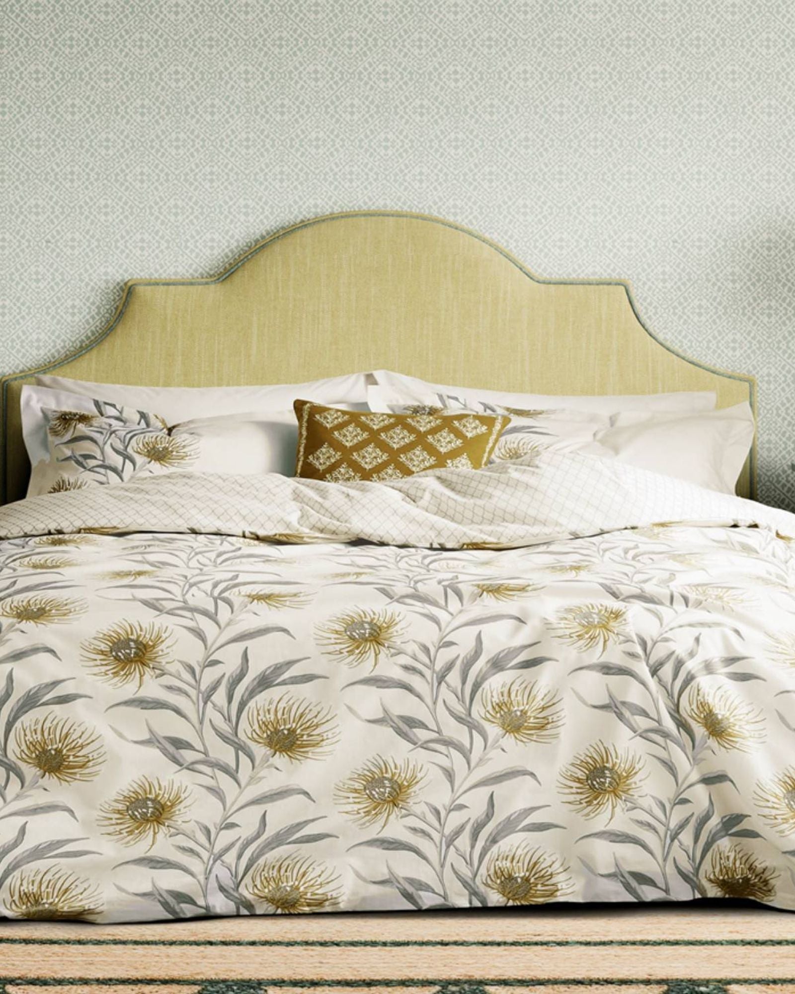 يُظهر هذا التصميم المُفصّل بدقةٍ بديعةٍ نبات البروتيا المُغطّى بالدبابيس بكلّ بهائه، بزخارفه الرائعة، مُجسّدًا رقة الطبيعة في فرشه. تُعنى الهيئة الوطنية للتراث بأكبر مجموعةٍ من الحدائق التاريخية ونباتات الحدائق المملوكة ملكيةً فرديةً في أوروبا، حيث يُمكن للجميع الاستمتاع بنباتاتٍ مثل البروتيا.