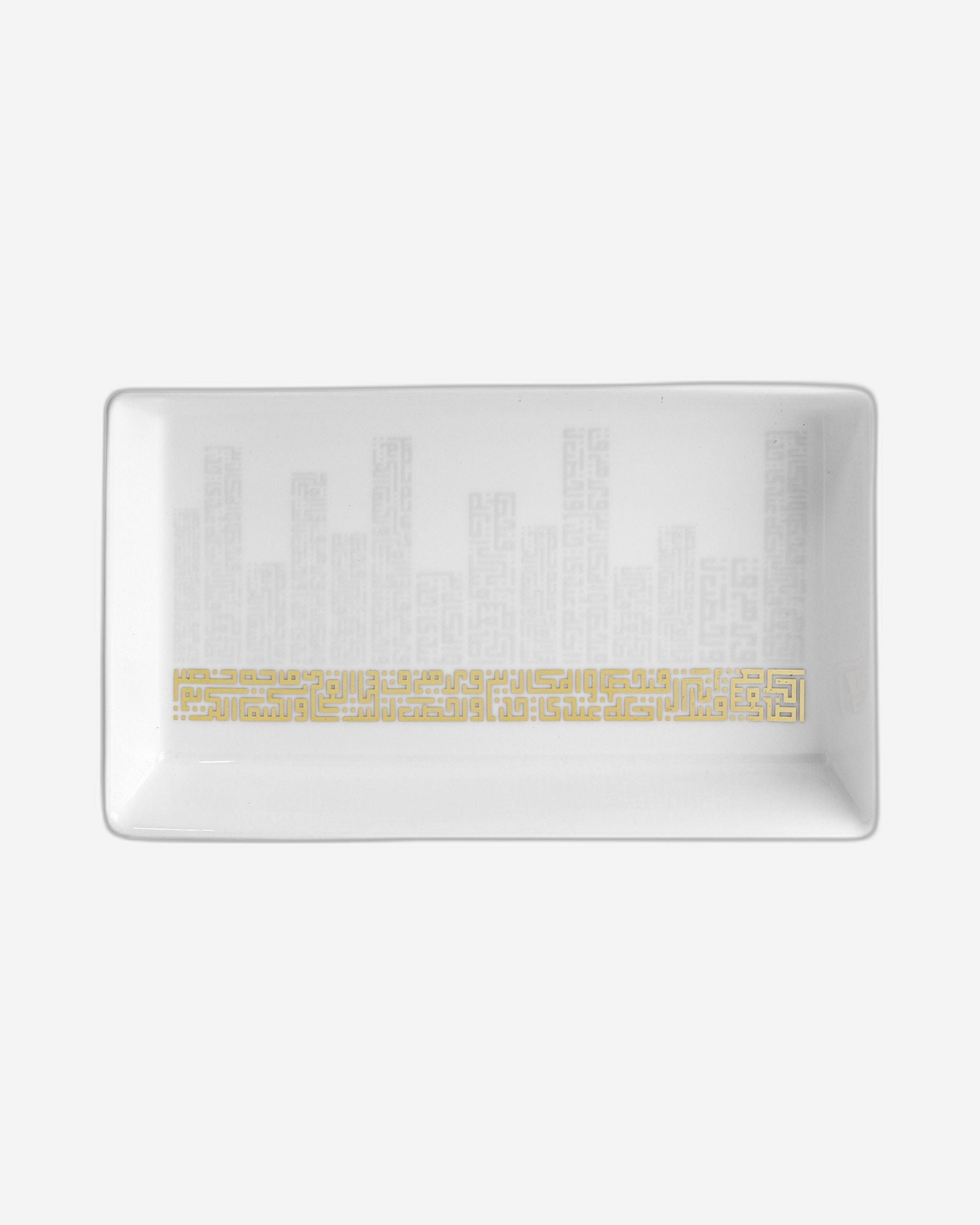 يأتي هذا التصميم العصري بلمسة جريئة. خط كوفي أنيق على شكل أبراج، يبشّر بمجموعة خالدة.