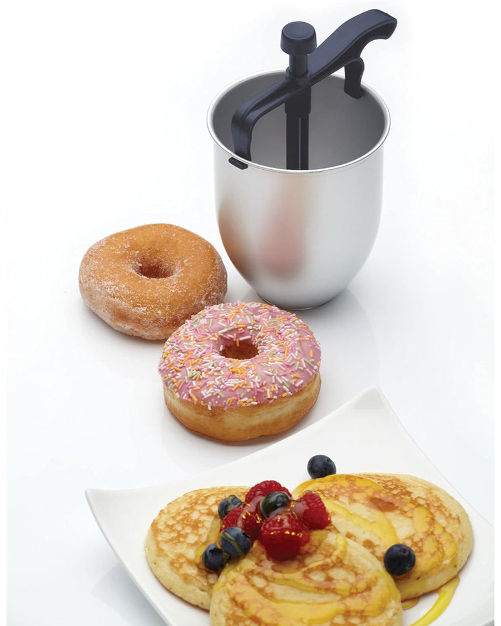 هل رغبتَ يومًا في إعادة صنع تلك الدونات المقلية اللذيذة التي تُباع في المهرجانات والمهرجانات؟ أو قلي فطائر دائرية رقيقة، لذيذة بما يكفي لتُنافس أي مطعم. مع موزع الدونات/الفطائر غير اللاصق هذا، من مجموعة كيتشن كرافت المصنوعة منزليًا، يُمكنك ذلك! سهل الاستخدام للغاية. املأه بالعجين، ثم اضغط على المكبس سهل الاستخدام لتوزيع دائرة أنيقة في مقلاة القلي أو مقلاة الزيت. بفضل تصميمه خفيف الوزن، يُمكنك استخدامه بسهولة بيد واحدة. كما أن طلائه غير اللاصق يعني سهولة تنظيف موزع العجين بعد الاستخدام.