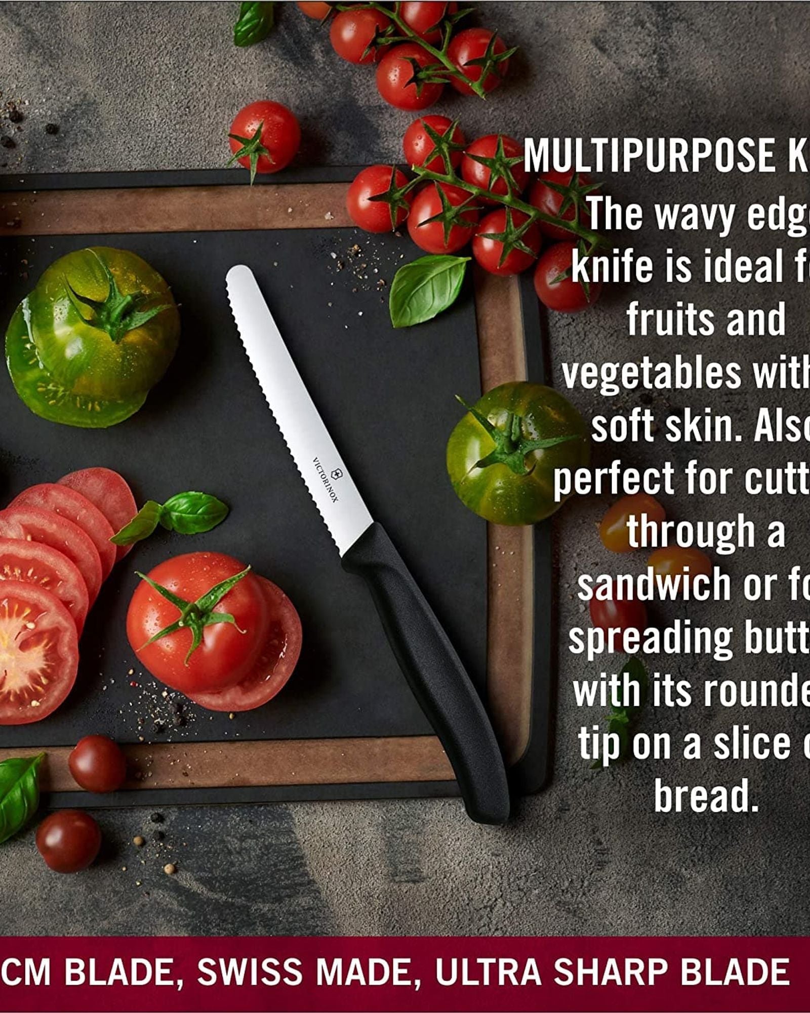 سكاكين تقشير فيكتورينوكس سويس كلاسيك 3 بثلاثة أنواع من الشفرات ومقابض سوداء مريحة للغاية. مزيج مثالي من سكاكين التقشير لاستخدامات متعددة الاستخدامات. مجموعة سكاكين التقشير لدينا، ثلاثية فائقة التحمل، تغطي جميع قواعد التقطيع والتقشير وإزالة البذور. تحتوي هذه المجموعة الصغيرة والناعمة على شفرتين متموجتين لأكوام الفاكهة، وشفرتين مستقيمتين للحمضيات الصغيرة والخضراوات الخضراء. تتضمن المجموعة شفرة مستقيمة بطول 8 سم، وشفرتين متموجتين بطول 8 سم، وشفرتين بطرف دائري وحافة متموجة بطول 11 سم.