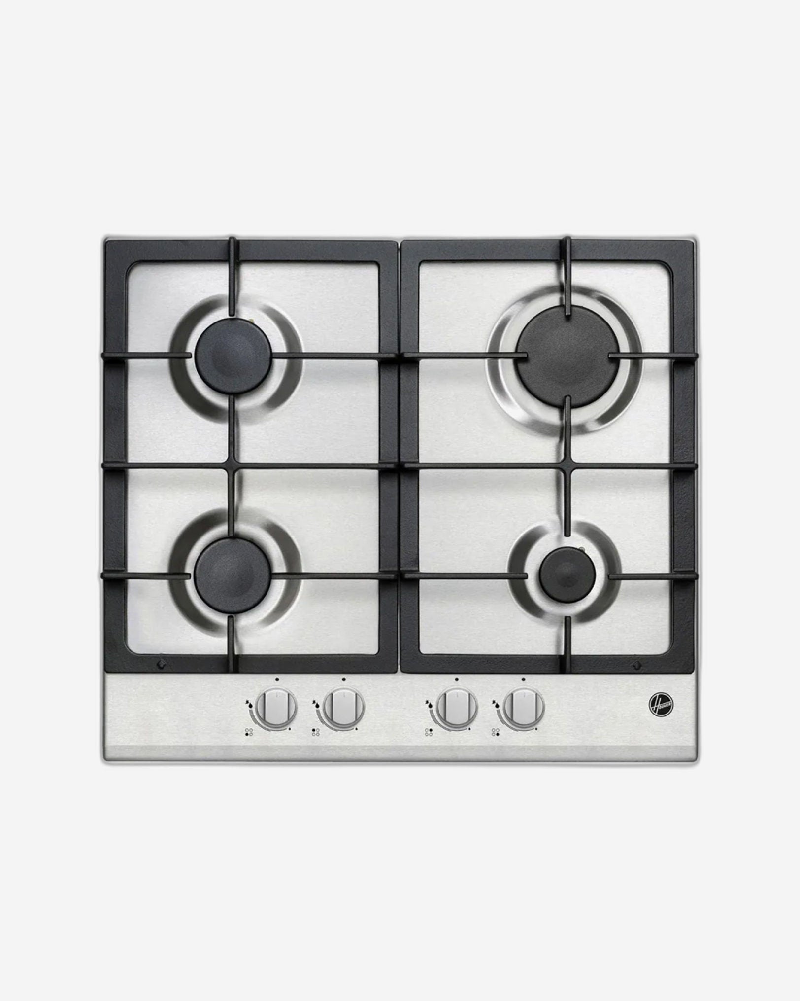 موقد غاز مدمج من هوفر، 60 سم، 4 شعلات غاز، حديد زهر، إشعال بلمسة واحدة، أمان كامل، 9 مستويات لهب، ستانلس ستيل، صنع في تركيا، ضمان لمدة عام - HGH-V64G-SBI