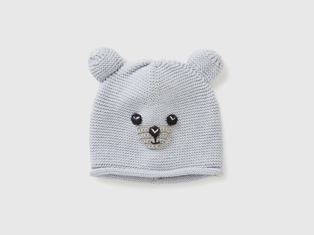 قبعة تريكو من مزيج القطن مع تطريزات كروشيه مرحة. وجه حيوان مطرز من الأمام وآذان من الأعلى. أنيقة وجذابة.
