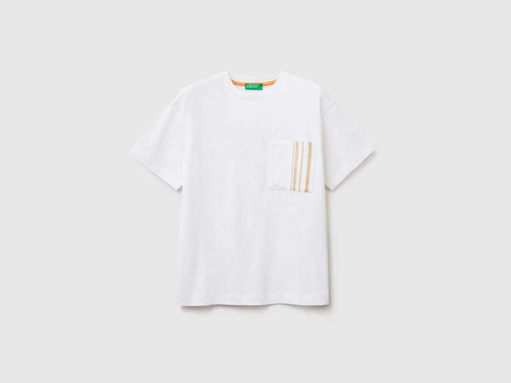 تيشيرت بأكمام قصيرة ورقبة دائرية من القطن الخالص. جيب بخطوط عمودية مطبوعة على الصدر الأيسر. تصميم أنيق ومريح.