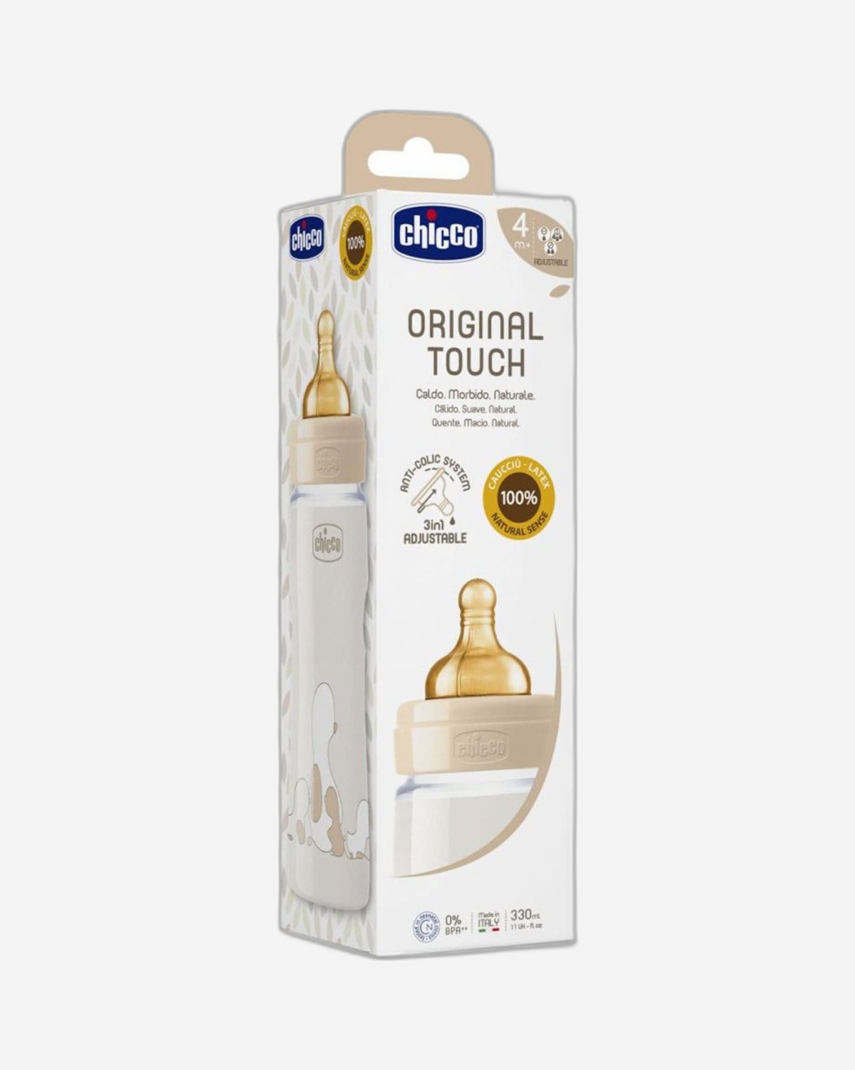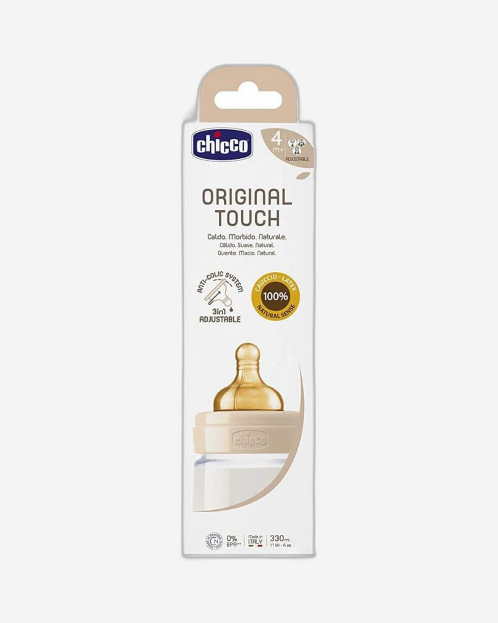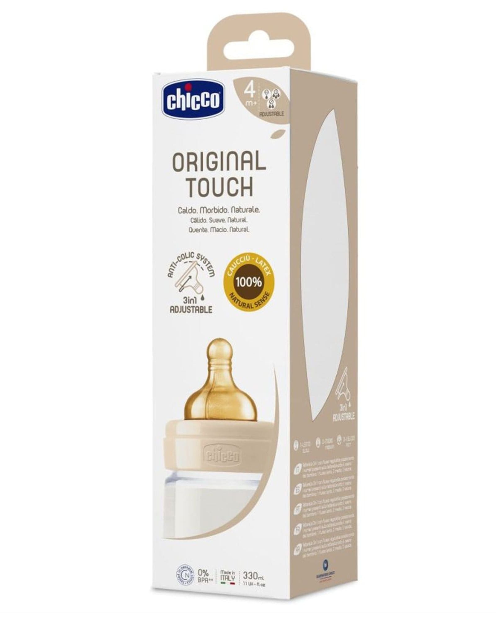 زجاجة رضاعة أصلية من تشيكو، سعة 330 مل، تدفق قابل للتعديل، من عمر 4 أشهر فما فوق، مصنوعة من مادة اللاتكس المحايدة