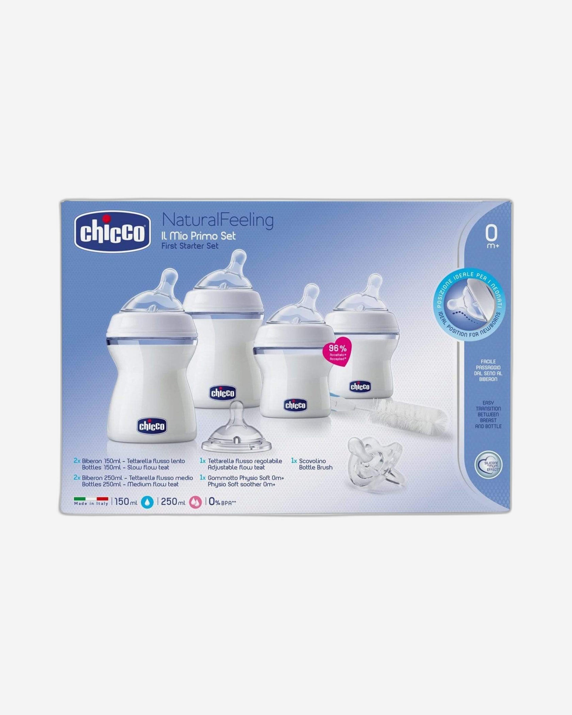 توفر مجموعة Chicco Natural Feeling Large Newborn كل ما تحتاجينه لتلبية احتياجات الأمهات والأطفال، حيث تقدم جميع الابتكارات الحصرية للسلسلة، بدءًا من الحلمة المصنوعة من السيليكون فائقة النعومة "بتأثير الأم" والتي تسهل التناوب بين الثدي والزجاجة.
