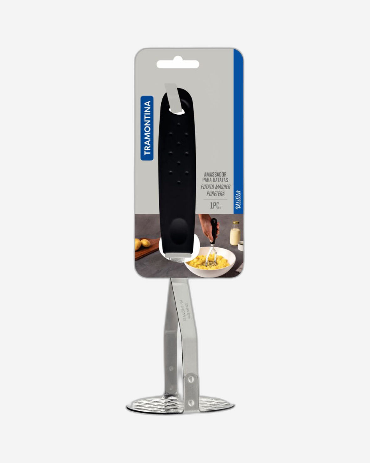 هراسة بطاطس ترامونتينا يوتيليتا المصنوعة من الفولاذ المقاوم للصدأ بمقبض من البولي بروبيلين الأسود