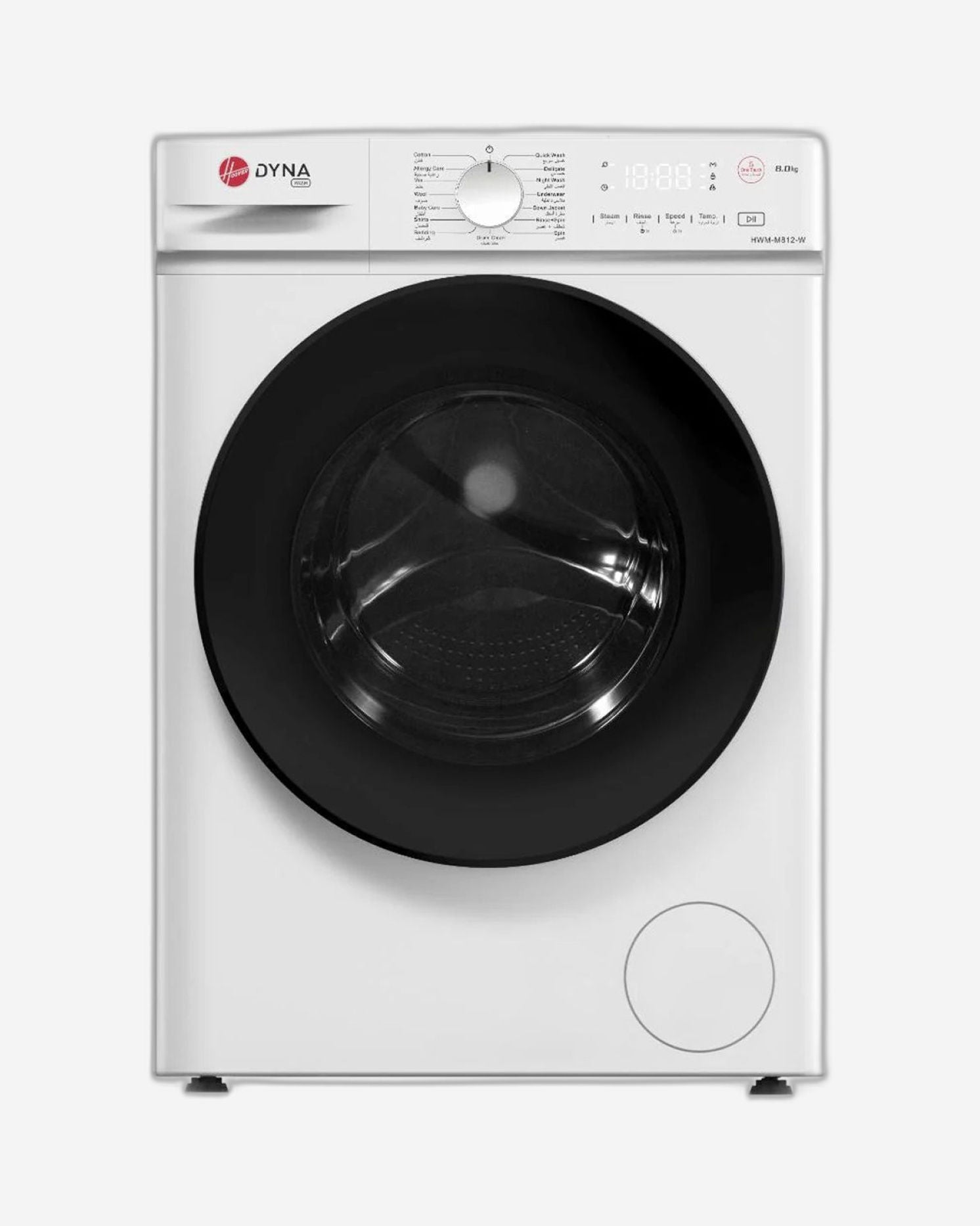 غسالة هوفر ٨ كجم تحميل أمامي، محرك عاكس، ١٢٠٠ دورة في الدقيقة، ١٥ برنامج، مقبض ولوحة تحكم تعمل باللمس، ضمان لمدة عام من الشركة المصنعة و١٠ سنوات على محرك العاكس، أبيض - HWM-M812-W