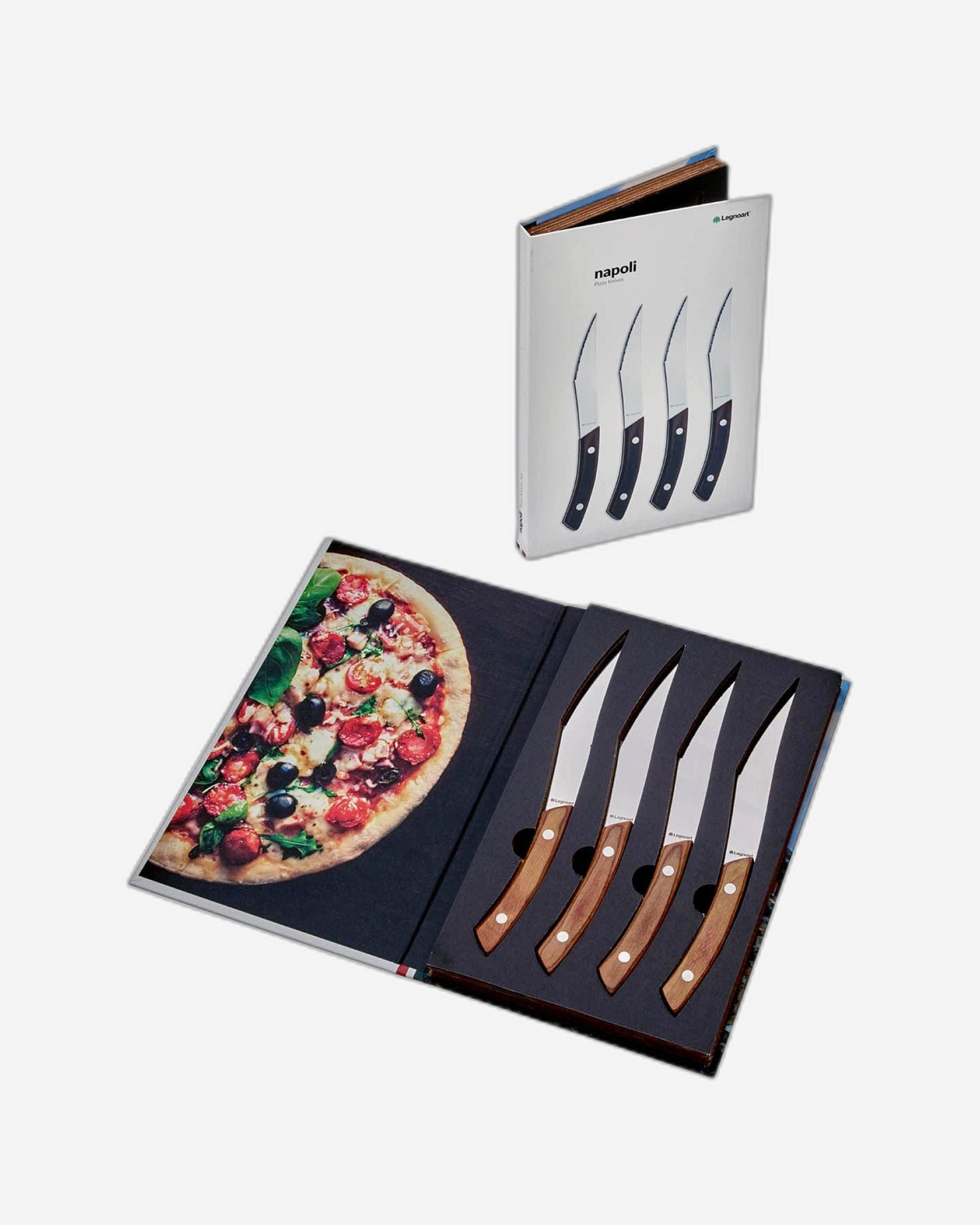 مجموعة سكاكين بيتزا نابولي من ليجنوارت، مكونة من 4 قطع، بمقبض داكن من الفولاذ المقاوم للصدأ، عبوة من 10 قطع
