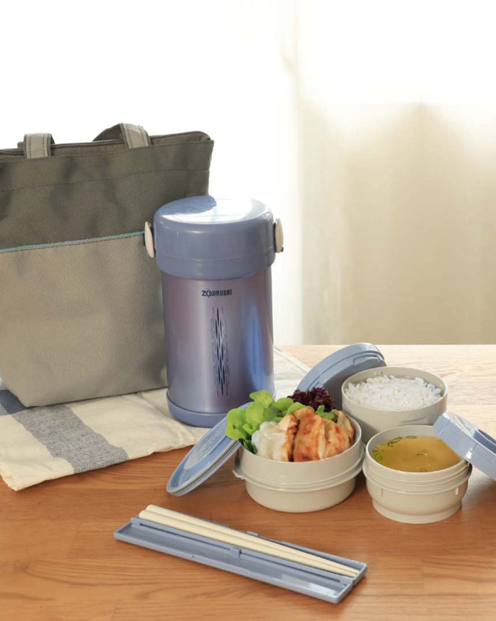 علبة غداء زوجيروشي زرقاء بسعة 0.84 لتر معزولة حرارياً