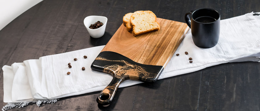 لوح خشب أكاسيا كبير الحجم من لين وليانا مع لمسات من الراتنج