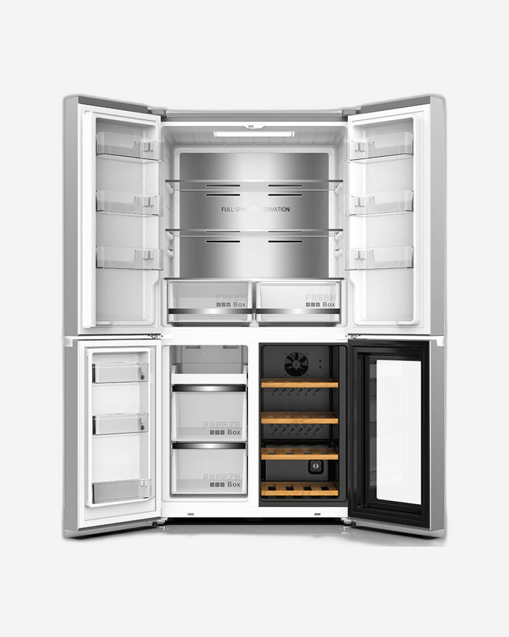ثلاجة هوفر سيلفر فروست سعة 755 لترًا بباب متقاطع مع مبرد مشروبات وتقنية العاكس - HXD-K755-S