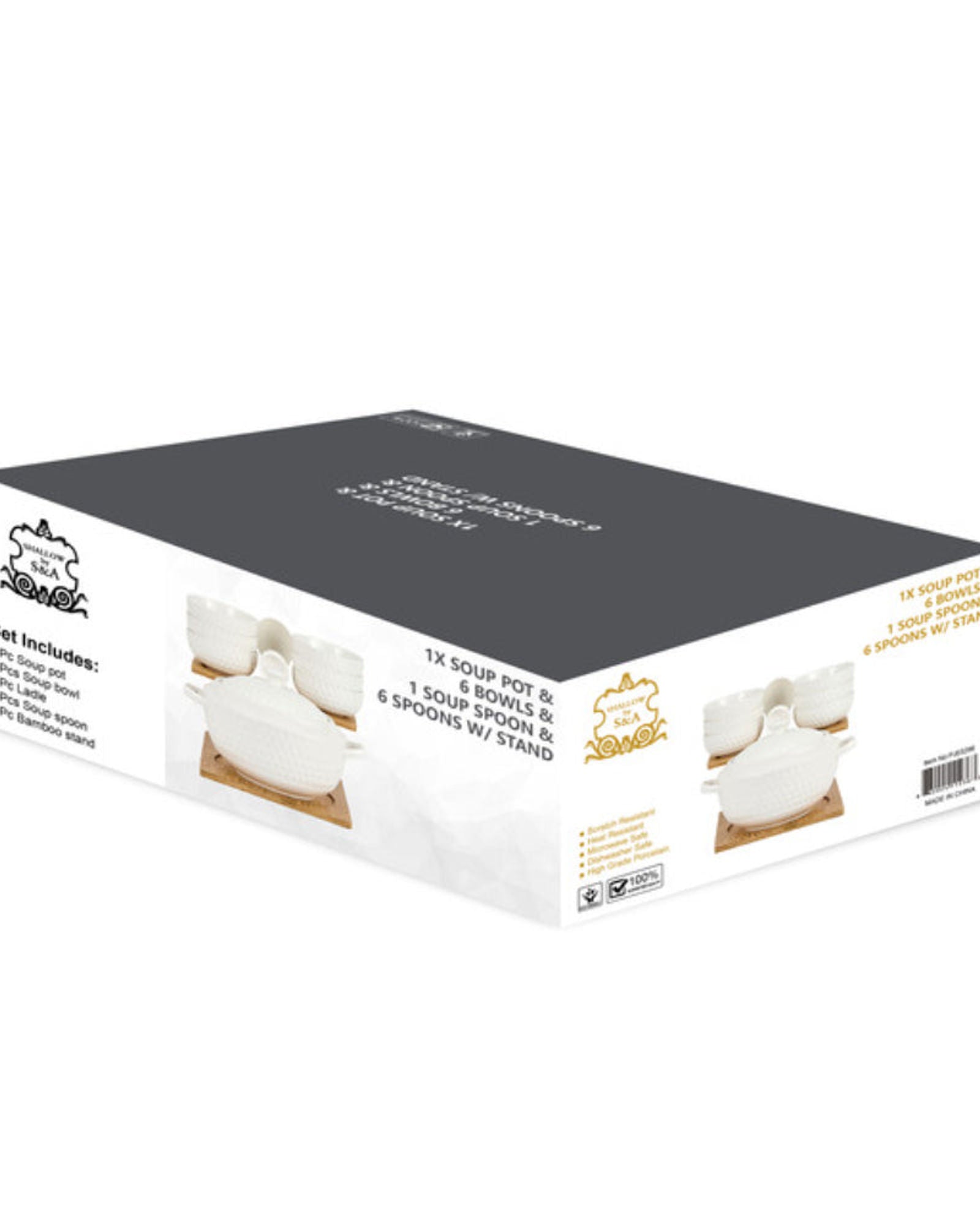 * مجموعة تقديم الحساء الكاملة: تتضمن وعاء حساء كبير واحد، وملعقة حساء واحدة، و6 أوعية، و6 ملاعق، وحامل خيزران قوي لتقديم منظم
