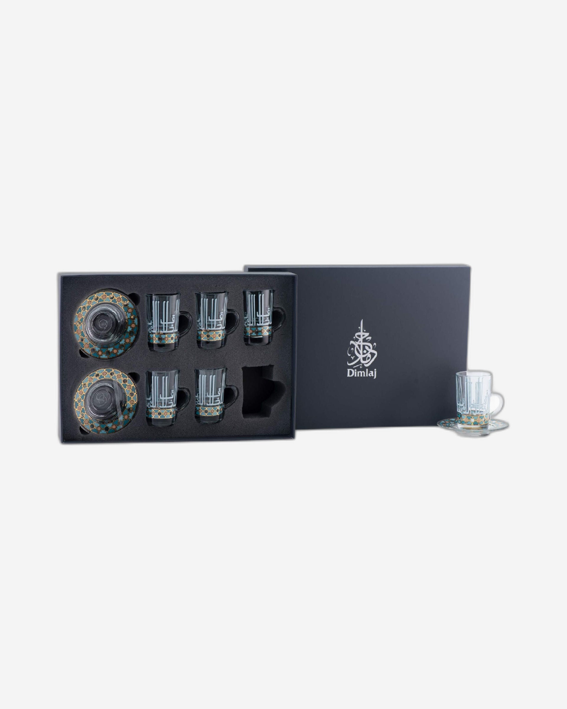 طقم فناجين وصحون شاي ديملاج أسالا، 6 قطع، ذهبي وأخضر