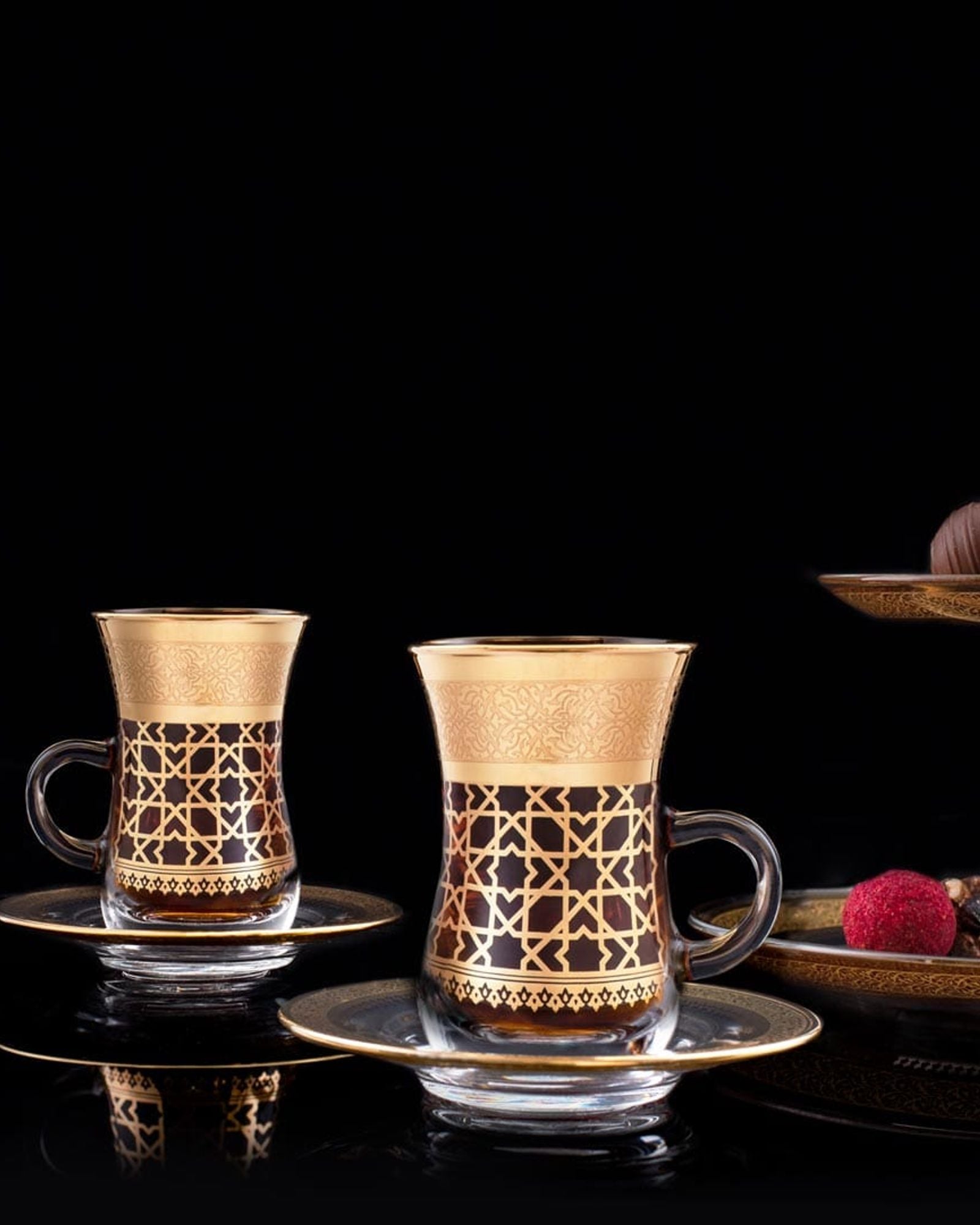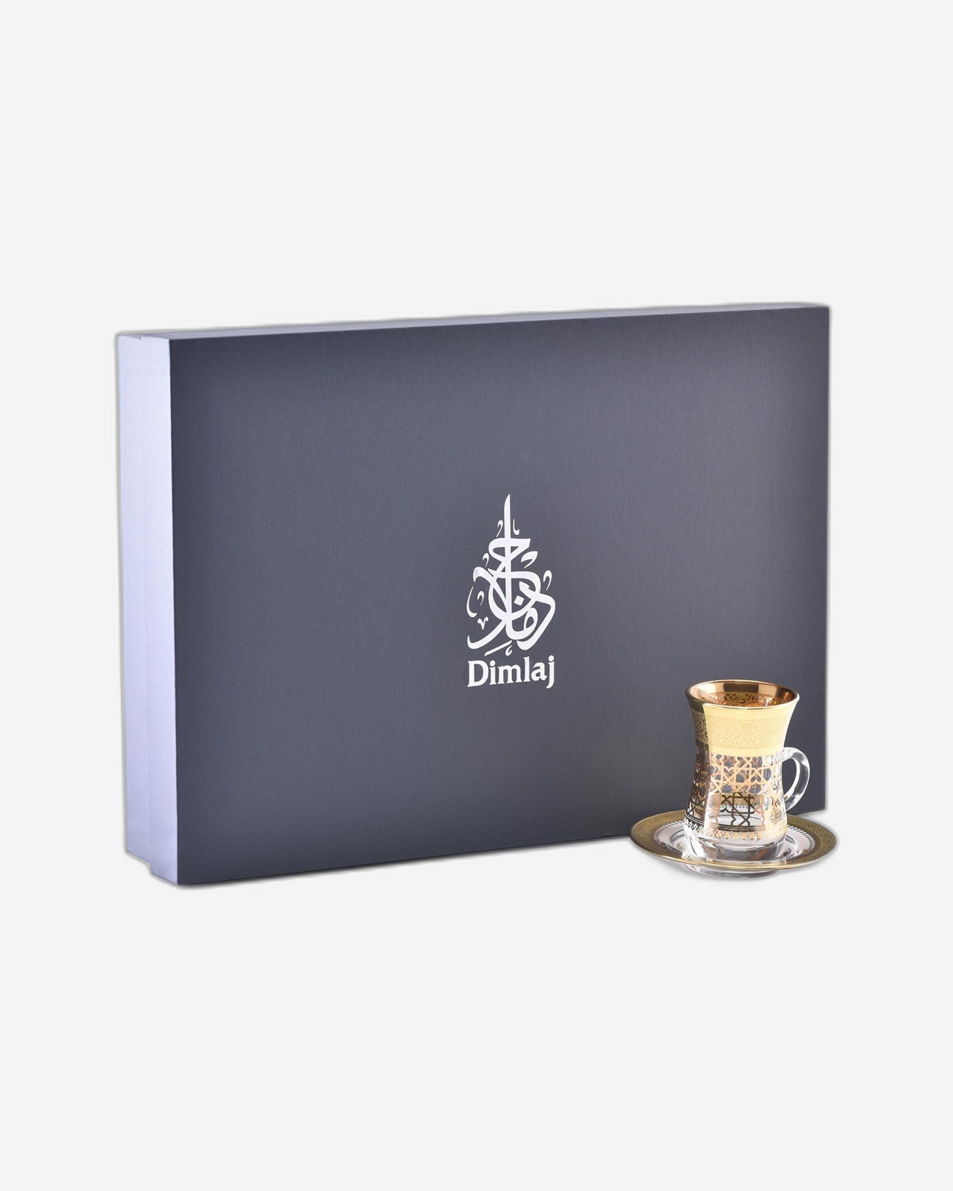 دملاج قرطبة استكانة شاي مع صحون 6 قطع ذهبي