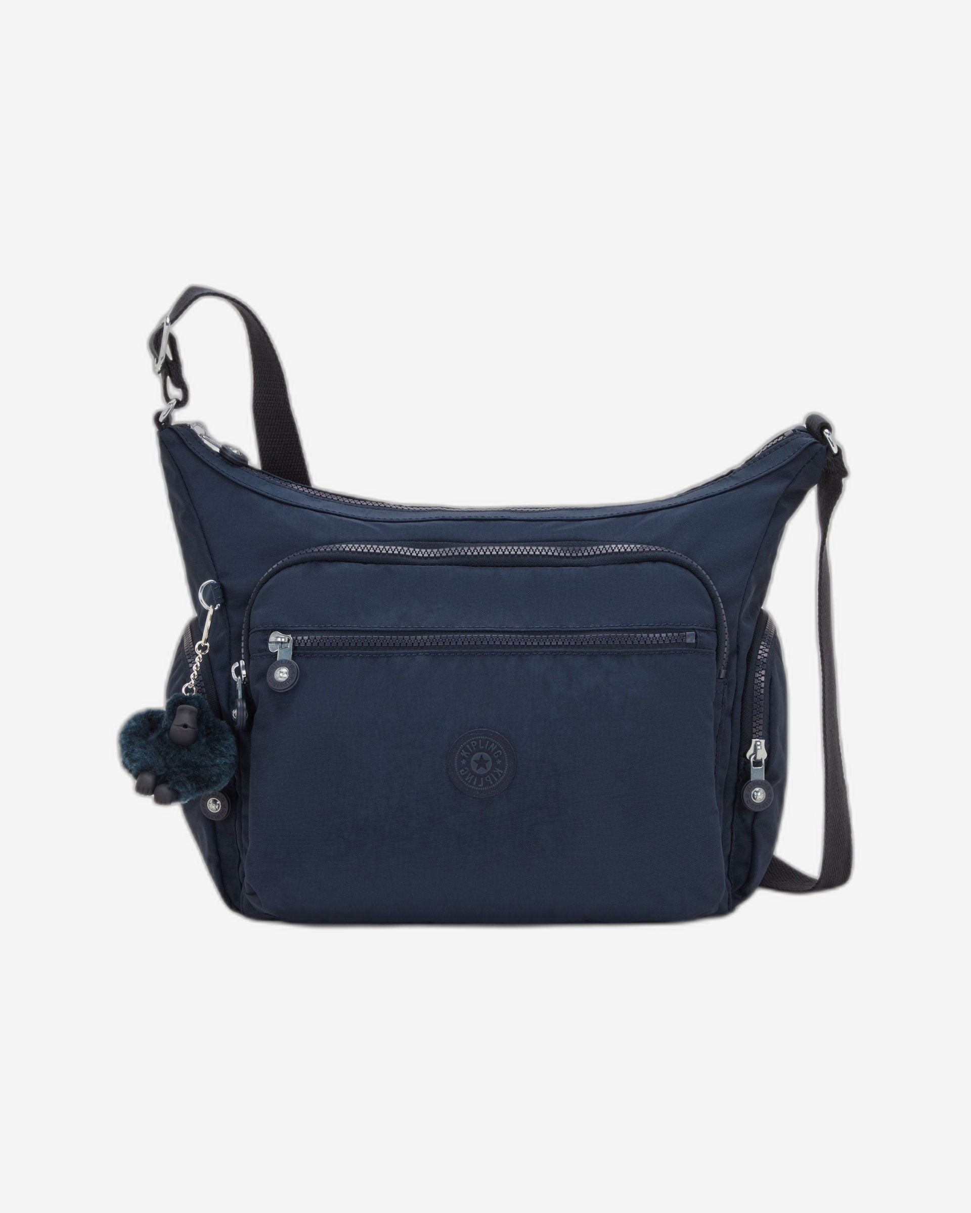 مع جيوب داخلية وخلفية وأمامية وجانبية متعددة، حقيبة غابي متوسطة الحجم لا تكاد تخلو من أي شيء. اضبطي حزام الكتف لملاءمة مريحة، وعلقي قرد كيبلينج المفضل لديكِ على الحلقة D المرفقة لإضفاء لمسة مميزة.