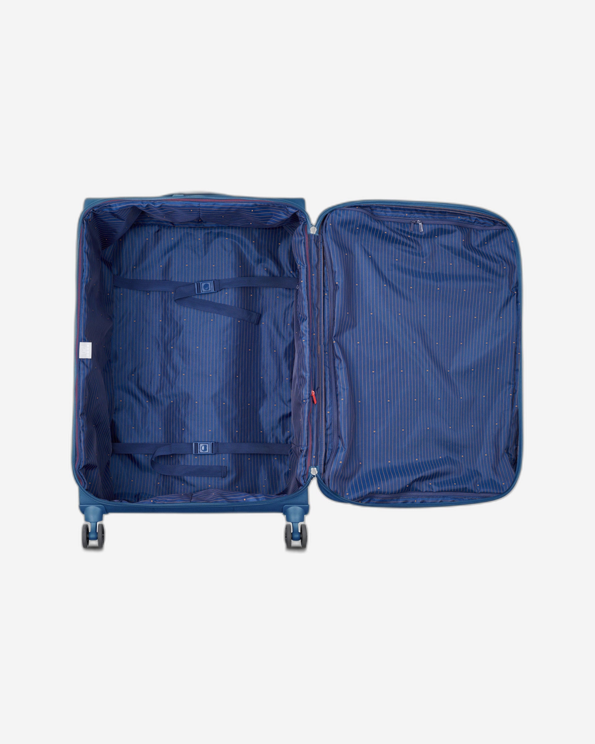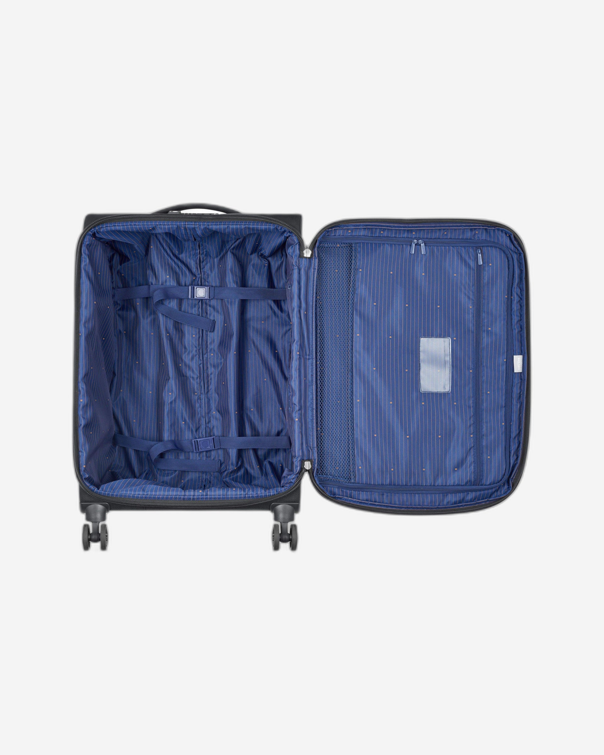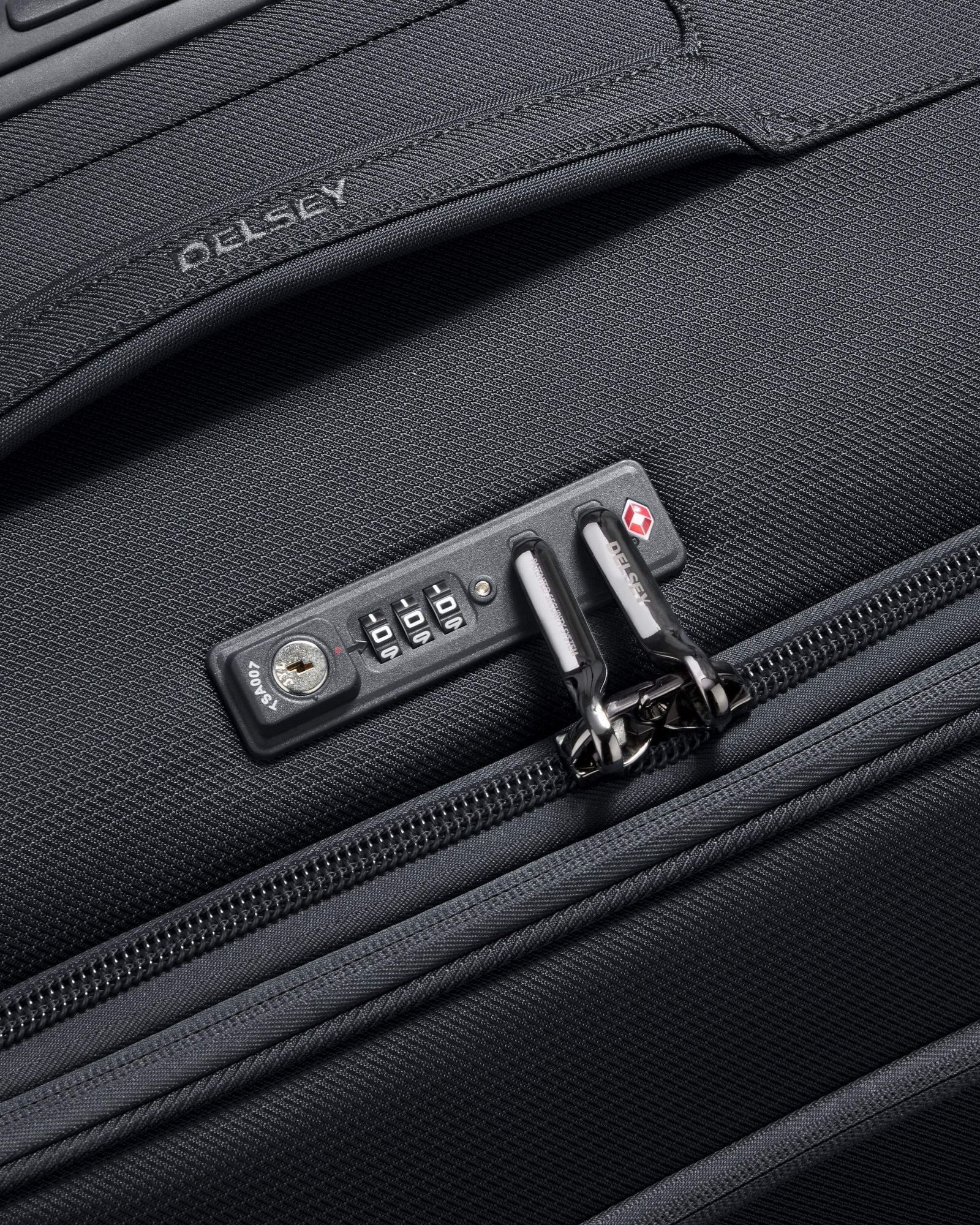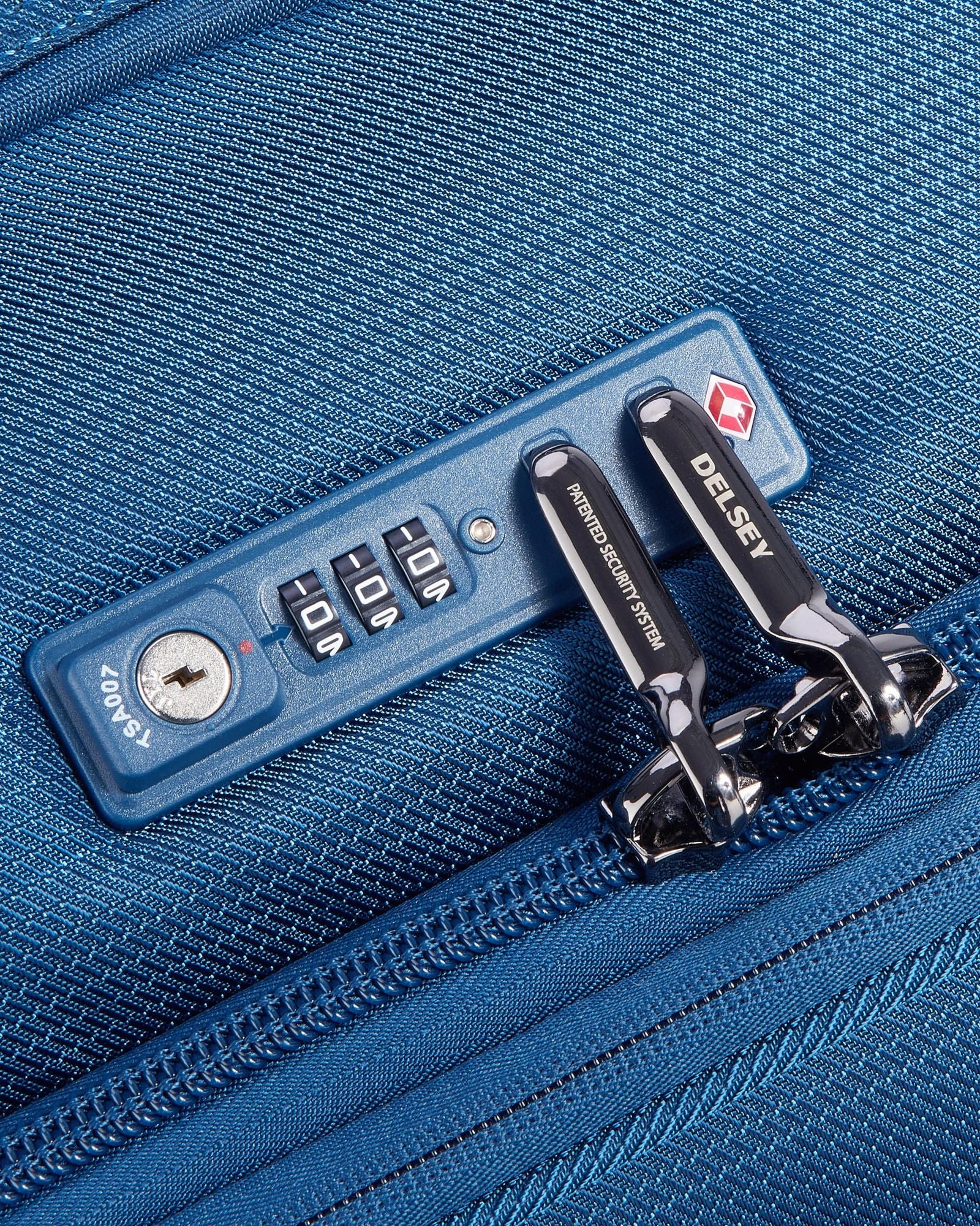 وداعًا لحقائب السفر المتضررة من الجمارك! يتيح لك قفل TSA المركب تأمين أمتعتك برمزك الشخصي، مع السماح لهيئة أمن النقل (TSA) بفحص أمتعتك دون إتلافها باستخدام مفتاح خاص. أمتعتك مزودة بنظام إغلاق فائق الأمان حاصل على براءة اختراع من DELSEY: سحاب SECURITECH® 2. يتميز هذا الإغلاق الفريد بمقاومة أكبر بثلاث مرات للاختراق من السحاب التقليدي، ويوفر أمانًا مثاليًا لأمتعتك. كما أن السحابات معززة، لتصبح أقوى بثلاث مرات من السحابات العادية. يُعد قفل TSA المركب والسحاب الأصلي المضاد للسرقة خير عون لك لسفر آمن.