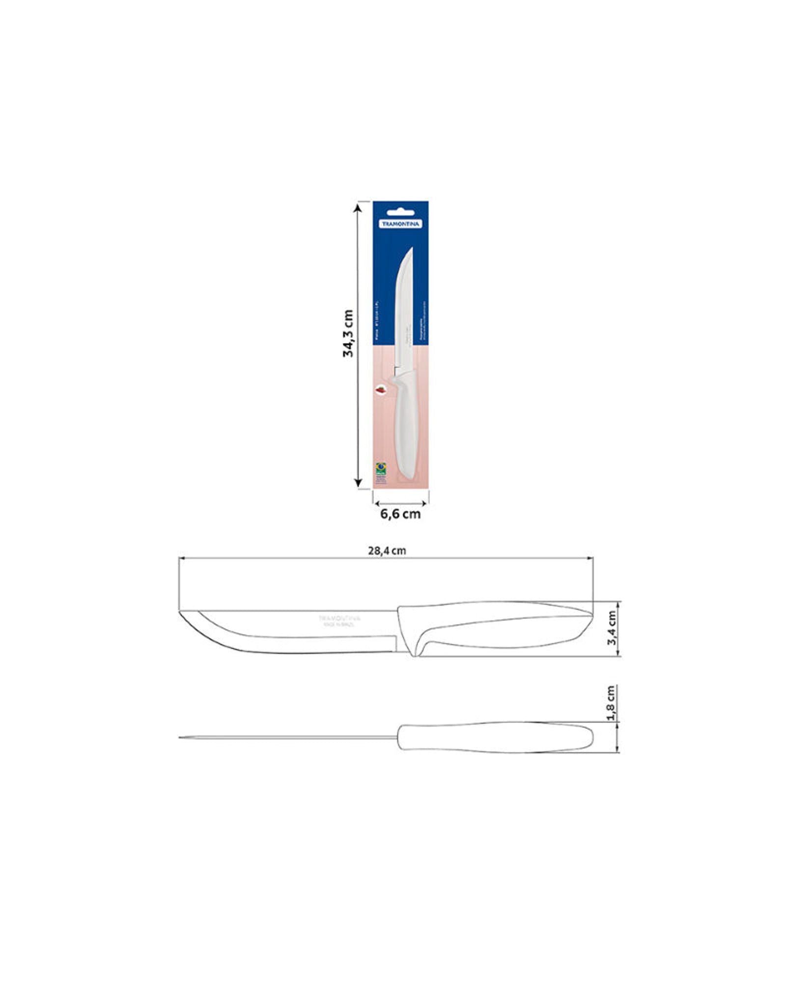 سكين ترامونتينا بلينوس للمطبخ، بطول 6 بوصات، بشفرة من الفولاذ المقاوم للصدأ ومقبض من البولي بروبيلين بلون أبيض كريمي، تجعل حياتك اليومية أسهل بكثير. مثالية لتقطيع اللحوم والفواكه والخضراوات في وصفاتك، بشفرة تسهل تقطيع مختلف أنواع الطعام. بتصميمها العصري والجريء، تُضفي لمسة جمالية على مطبخك وتوفر لك الأمان أثناء الاستخدام. مصنوعة بشفرة من الفولاذ المقاوم للصدأ بطول 6 بوصات ومقبض من البولي بروبيلين بلون أبيض كريمي. اقتنِ سكاكين ترامونتينا في منزلك واجعل حياتك اليومية أسهل!