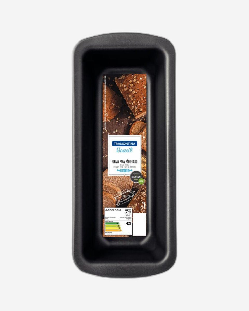 قالب خبز من الألومنيوم من ترامونتينا برازيل، مطلي بطبقة ستارفلون ماكس غير لاصقة، لون جرافيت، 30 سم، 1.9 لتر
