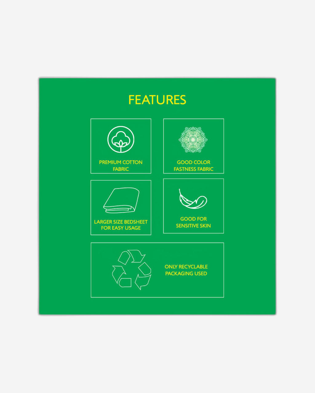 طقم الفراش مصنوع من قطن عالي الجودة 100%، ويوفر سطحًا ناعمًا ومريحًا للنوم، مما يضمن لك نومًا هانئًا. استخدام الأصباغ الخالية من المواد الكيميائية يجعله آمنًا حتى على أكثر أنواع البشرة حساسية، مما يمنحك راحة البال والطمأنينة.