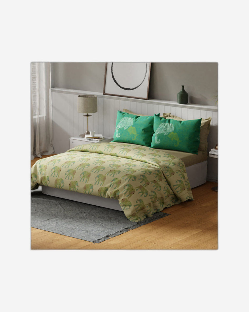 ملاءة سرير سفاري 210TC كينج من يونايتد كولورز أوف بينيتون مع غطائي وسادة باللون الأخضر الهادئ